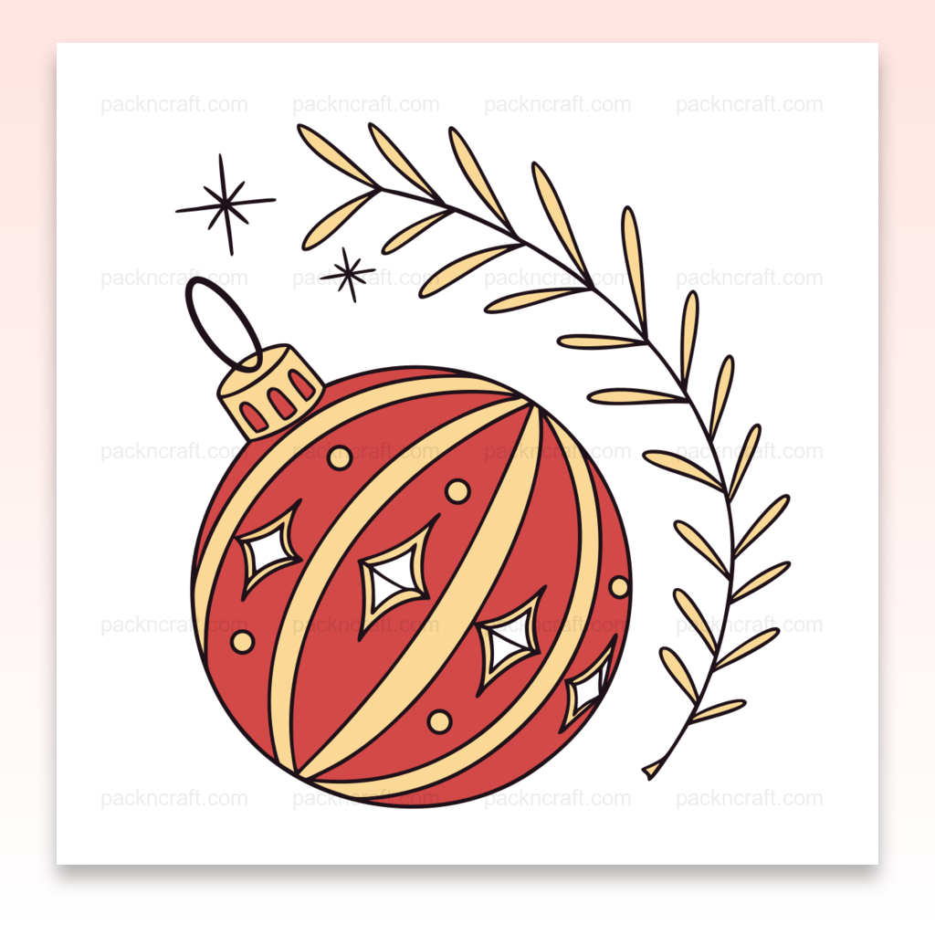 Les décorations de Noël prennent vie avec notre charmante illustration vectorielle. Cette boule de Noël étincelante, entourée de feuillage hivernal, offre une ambiance chaleureuse et festive idéale pour personnaliser vos projets de papeterie, cartes de vœux, ou décors de fêtes. 🎄
