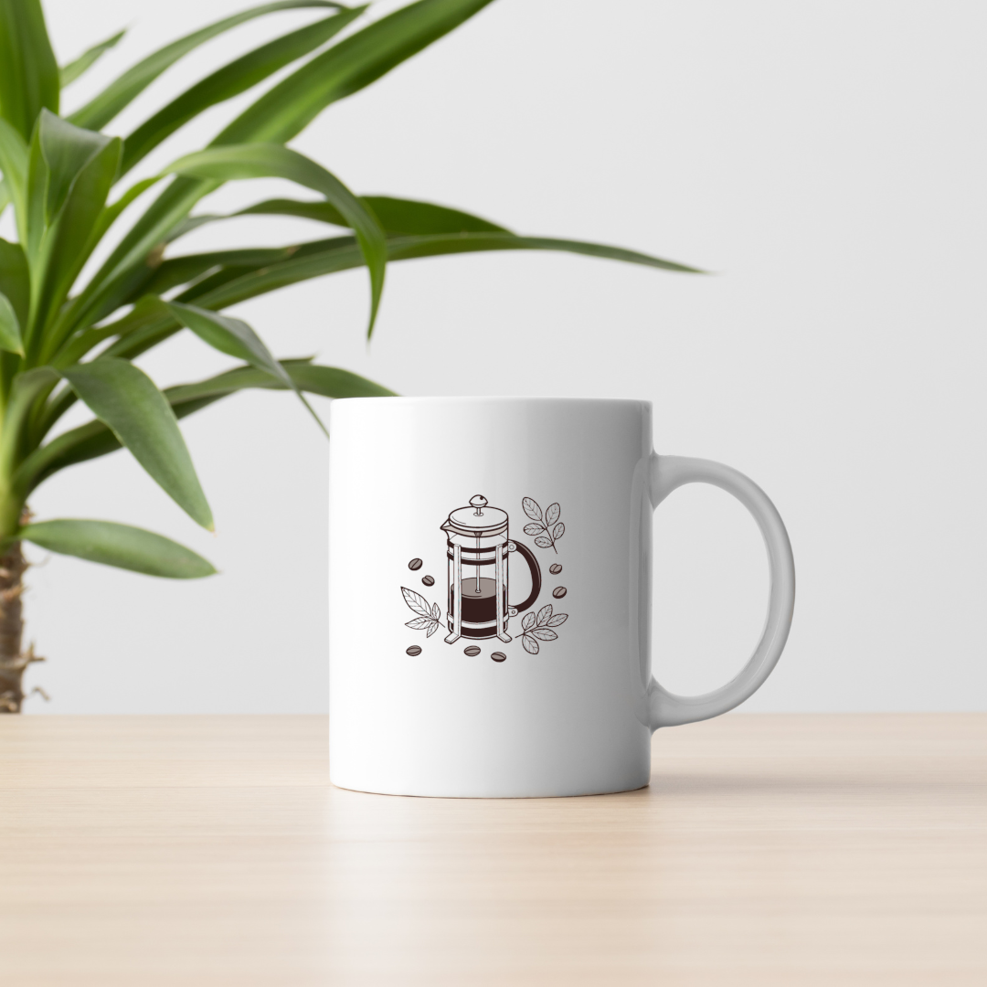 ☕ Découvrez notre superbe illustration de cafetière à piston, parfaite pour les amateurs de café !