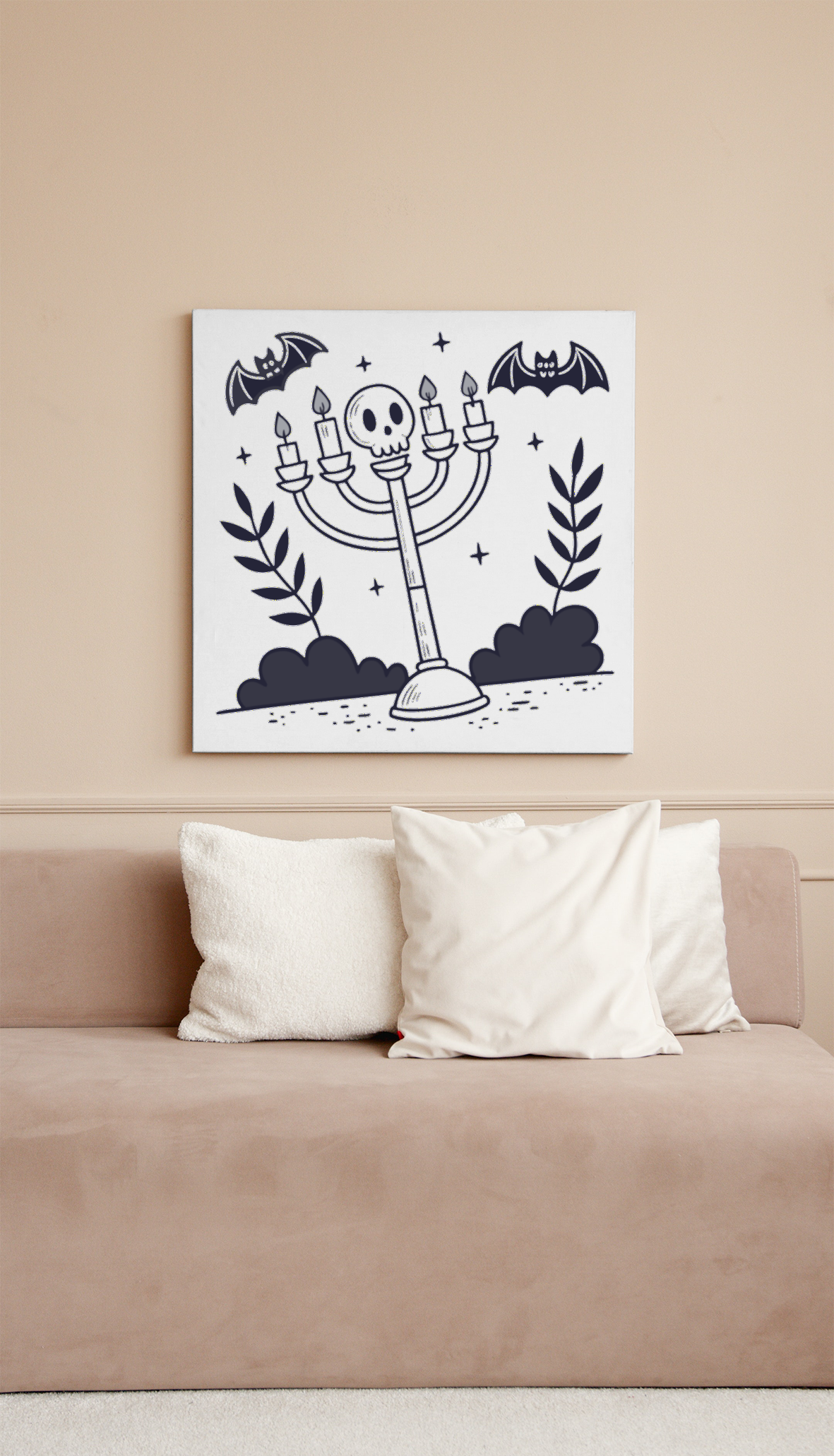 🎃 Plongez dans l'ambiance envoûtante d'Halloween avec notre Chandelier Crâne allumé, une illustration captivante pour toutes vos créations.