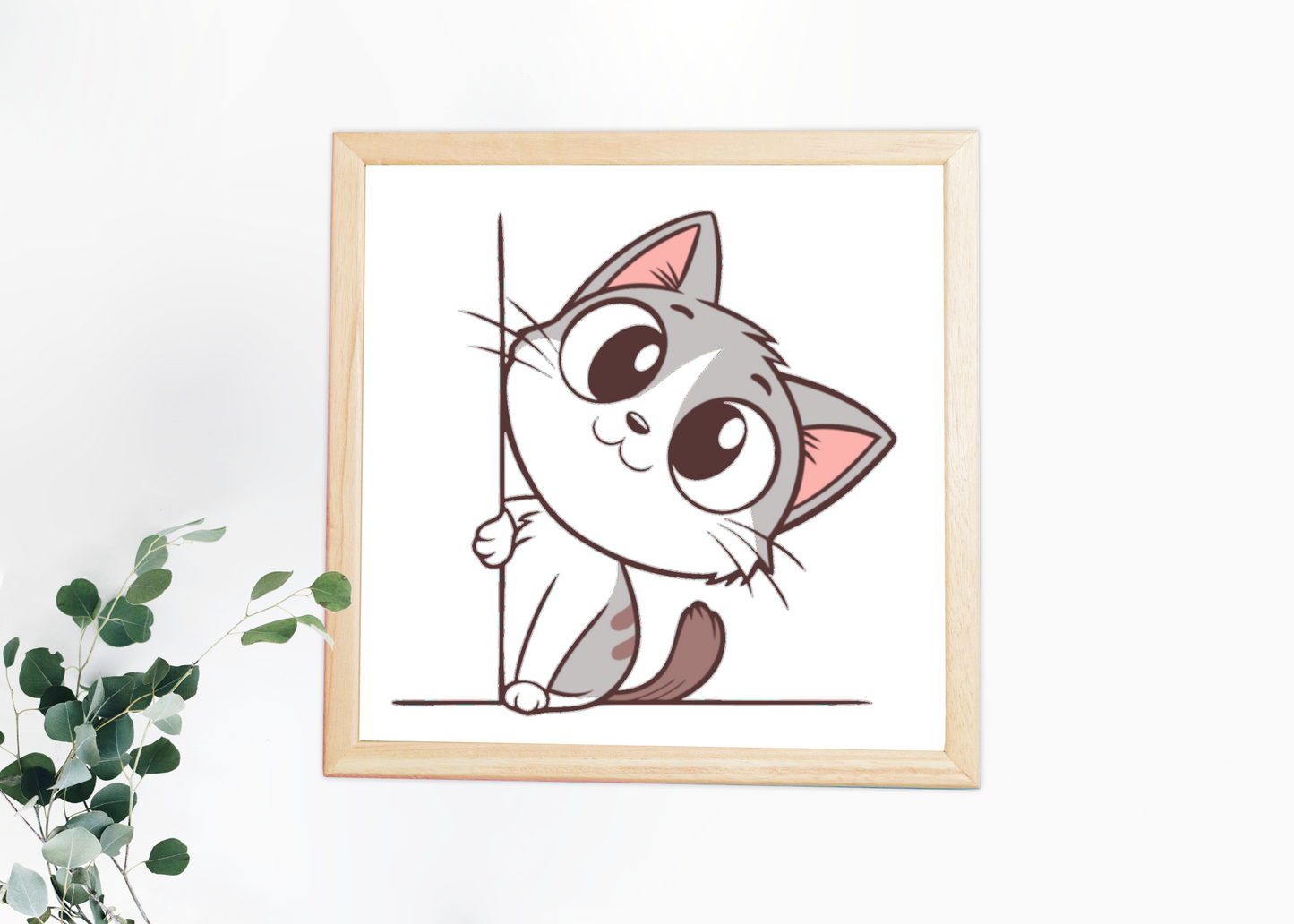 Chat Curieux Derrière le Rideau | Style Cartoon | Thème Animalier