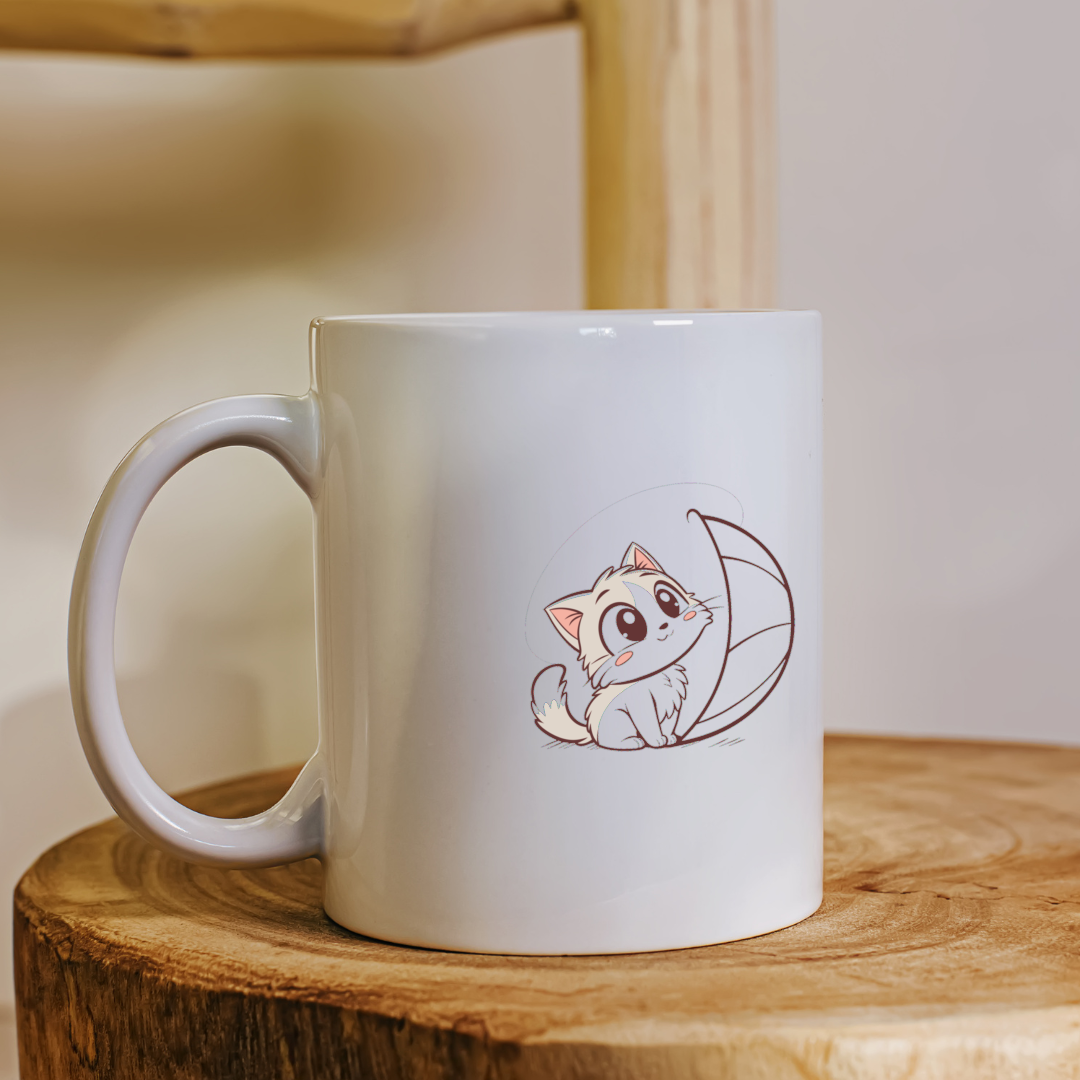 Chat espiègle abrité sous une feuille | SVG Kawaii | Nature douce