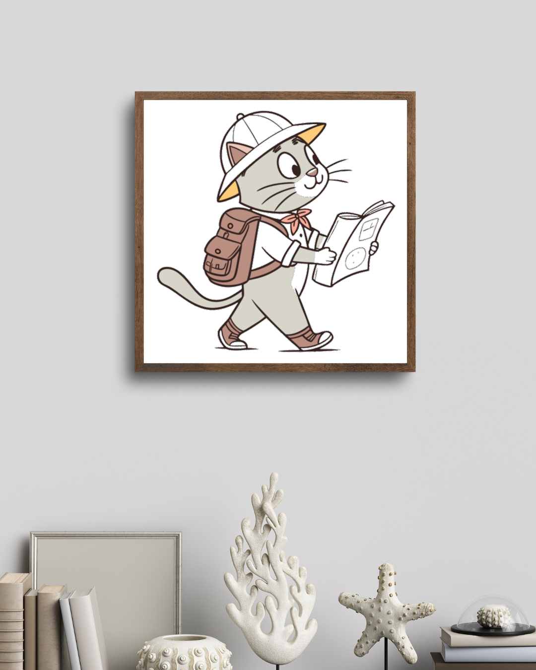 ✨ Embarquez dans une aventure créative avec ce chat explorateur charmant ! Téléchargez cette illustration pour éveiller votre projet. 🎒