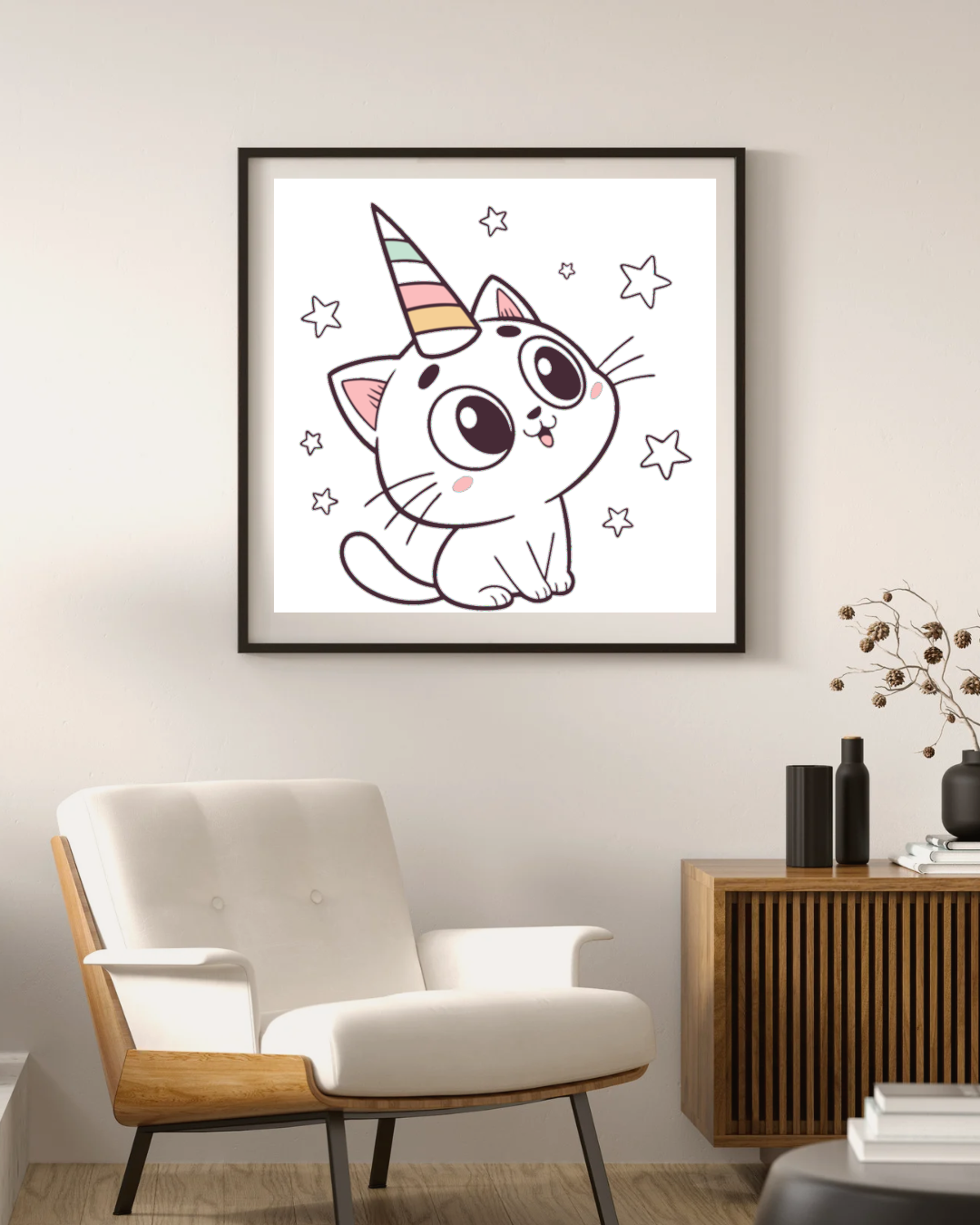 Laissez libre cours à votre créativité dans un univers adorable et enchanteur. Cette illustration est aussi un outil éducatif amusant pour les enfants. Utilisez-la pour des projets scolaires, des décorations de chambre ou toute autre idée créative. Adoptez cet adorable chat licorne et ajoutez une touche de fantaisie à votre monde.