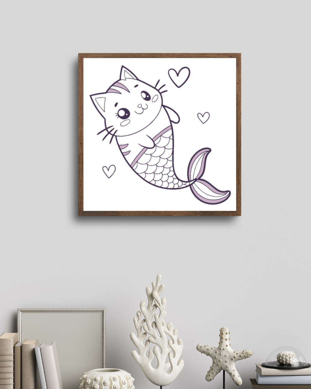 Avec ses lignes douces et son expression charmante, ce chat sirène est idéal pour des créations kawaii et enfantines. Donnez vie à vos projets grâce à une qualité d'impression exceptionnelle et explorez les possibilités infinies qu'offre ce design vectoriel. Que ce soit pour des stickers, des affiches ou encore des produits imprimés personnalisés, votre créativité n'aura plus de limites.