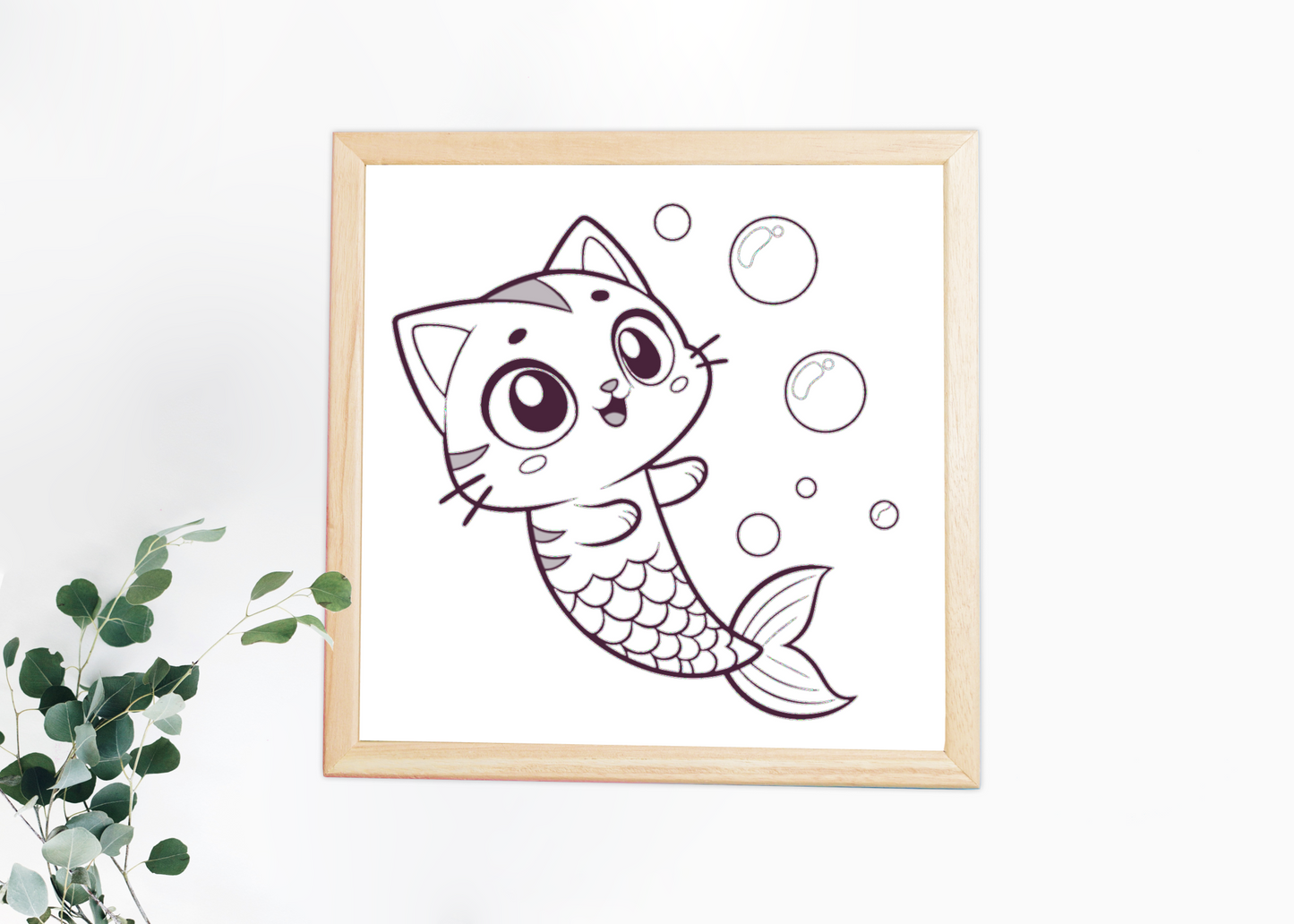 Explorez différentes façons d'intégrer ce charmant chat sirène dans votre monde créatif. Les possibilités sont infinies avec ce design aquatique élégant et adorable.