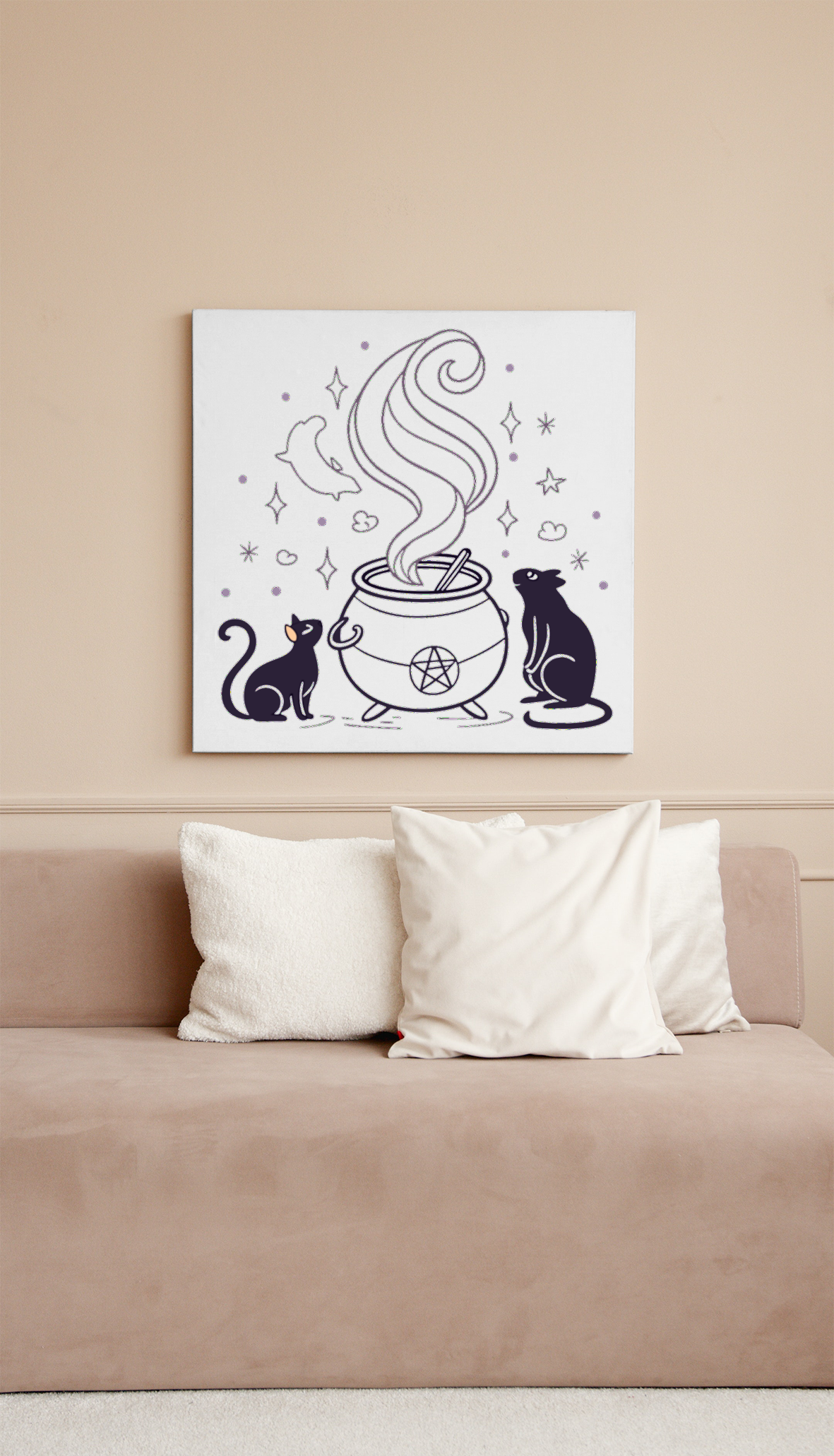 🪄 Donnez vie à vos projets créatifs avec cette illustration magique de chats autour d'un chaudron !