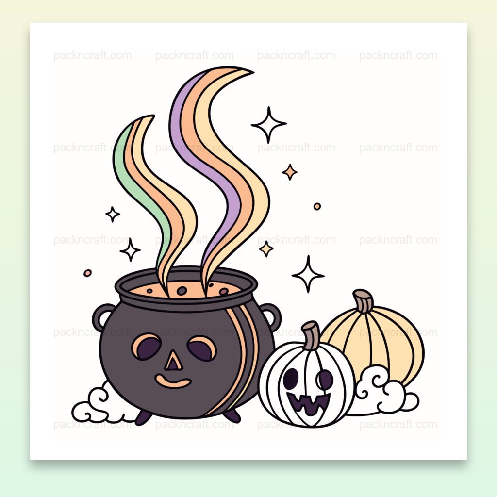 Chaudron Magique Fumé | SVG Illustratif Pastel | Thème Halloween