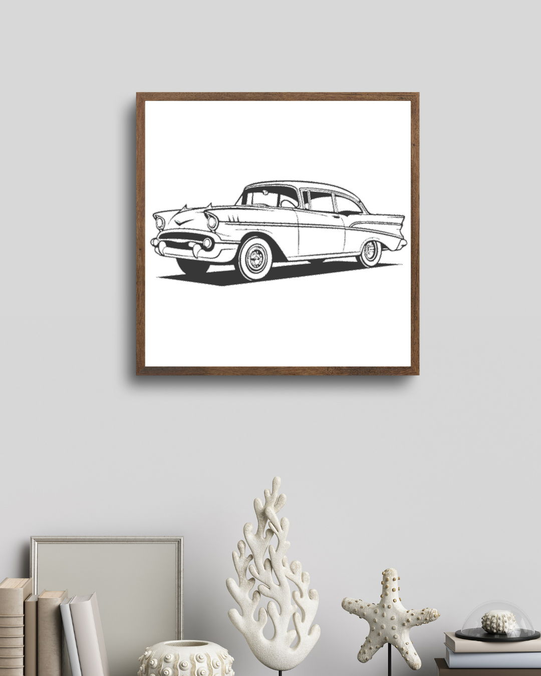 🎨 Redécouvrez le Chevrolet Bel Air 1957, une icône intemporelle du style vintage. Capturez la beauté de cette voiture emblématique avec notre illustration numérique.
