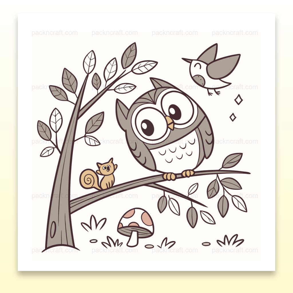 Plongez dans l'univers enchanteur de la forêt avec notre illustration vectorielle de chouette souriante sur une branche, parfaite pour apporter une ambiance chaleureuse et ludique à vos projets. Ce fichier numérique inclut un SVG vectoriel de haute qualité et un PNG détaillé (1024x1024 pixels), idéal pour des impressions nettes et des conceptions créatives.