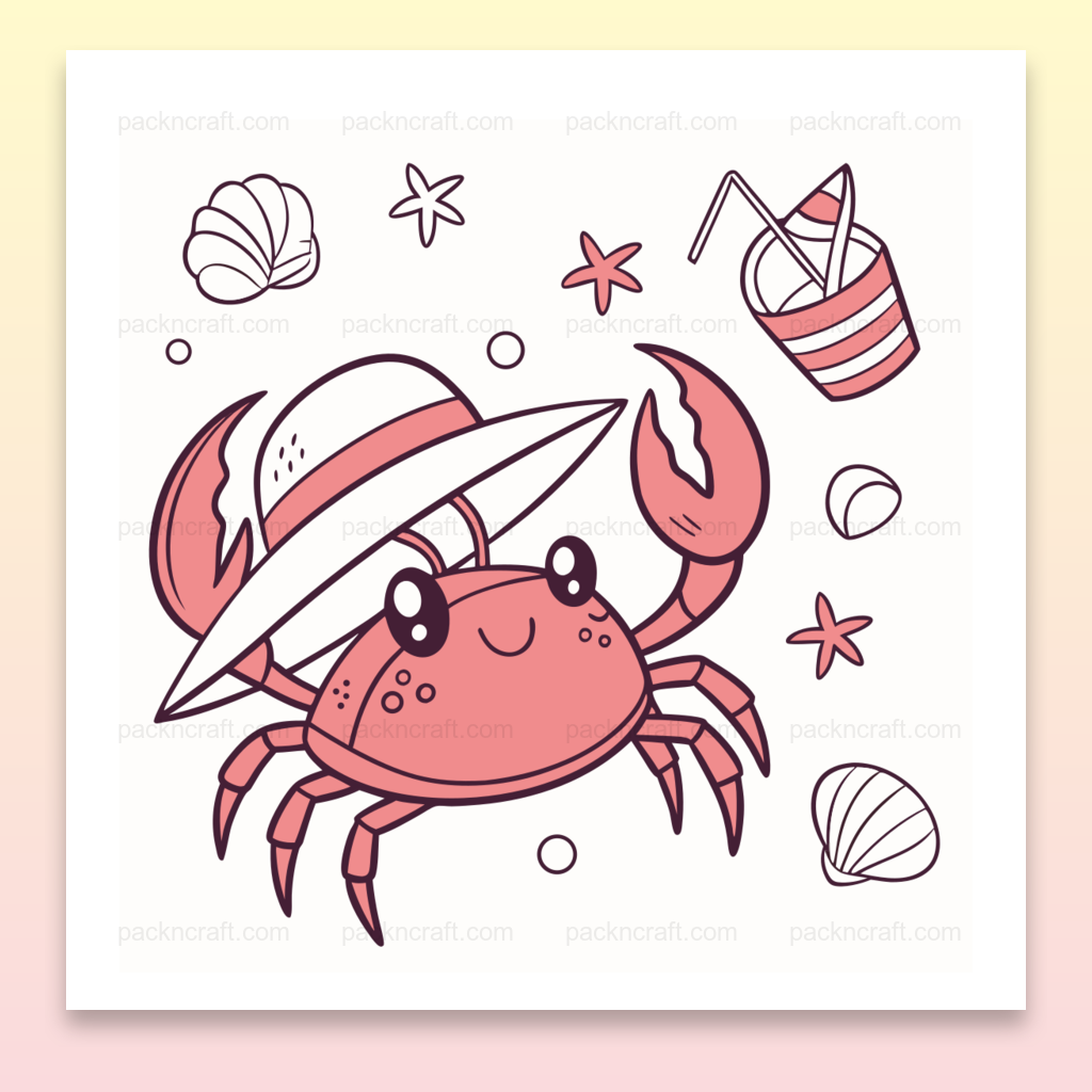 🎨 Découvrez notre adorable crabe arborant un chapeau tendance, prêt pour des vacances sur la plage !
