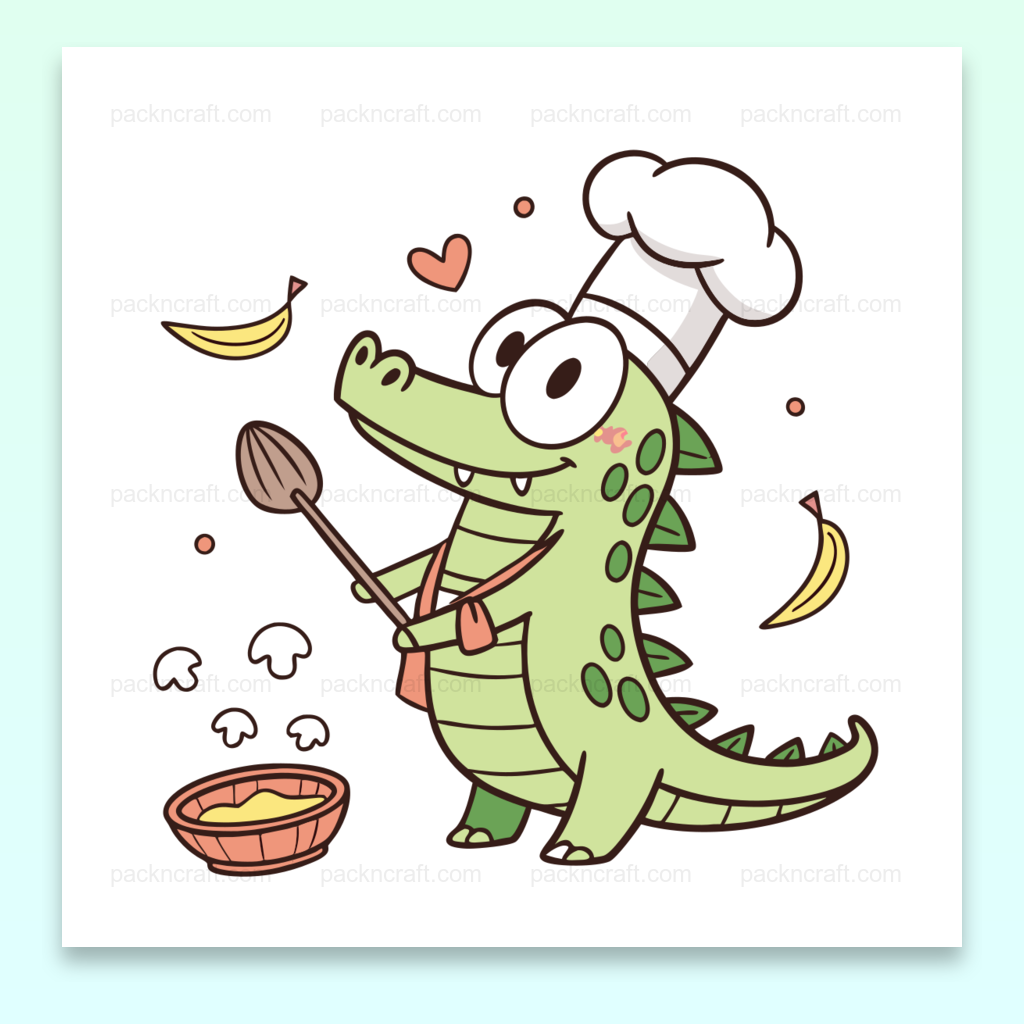 Crocodile Chef Joyeux | SVG Gourmand | Cuisine Creatif
