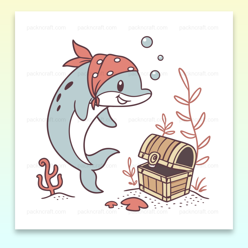 Dauphin pirate et trésor | Style kawaii | Aventure marine