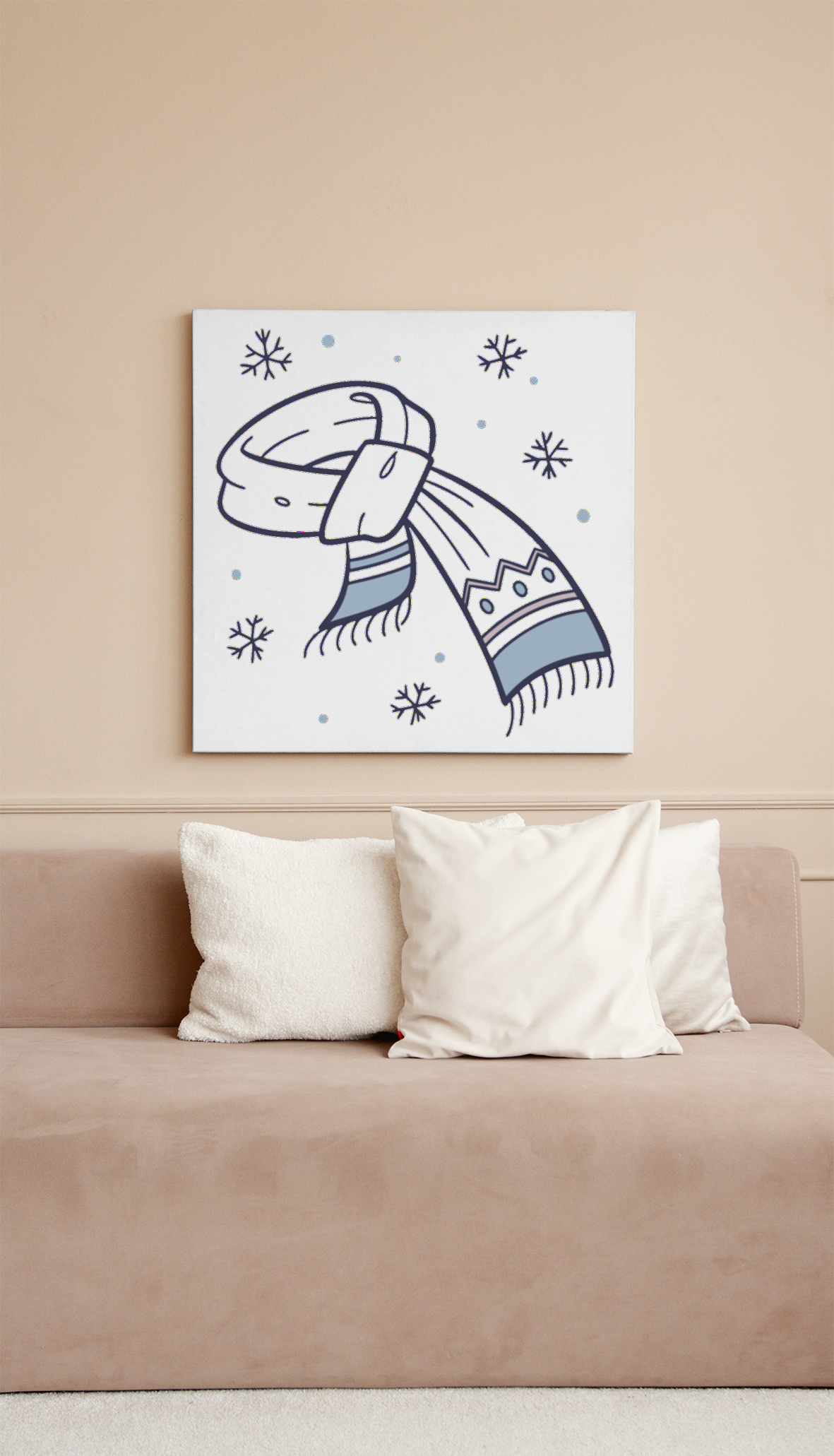 Cette écharpe au style minimaliste incarne la douceur de l'hiver et la chaleur des moments cocooning. Idéale pour vos créations numériques ou vos impressions personnalisées, cette illustration apporte une touche d'élégance à vos projets.