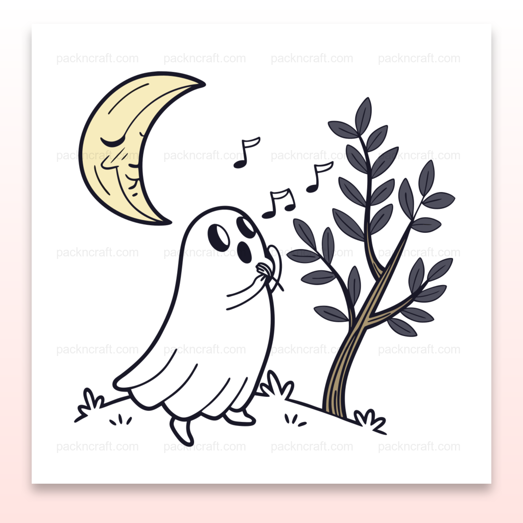 Fantôme chantonnant à la lune | SVG surréaliste | Nuit musicale