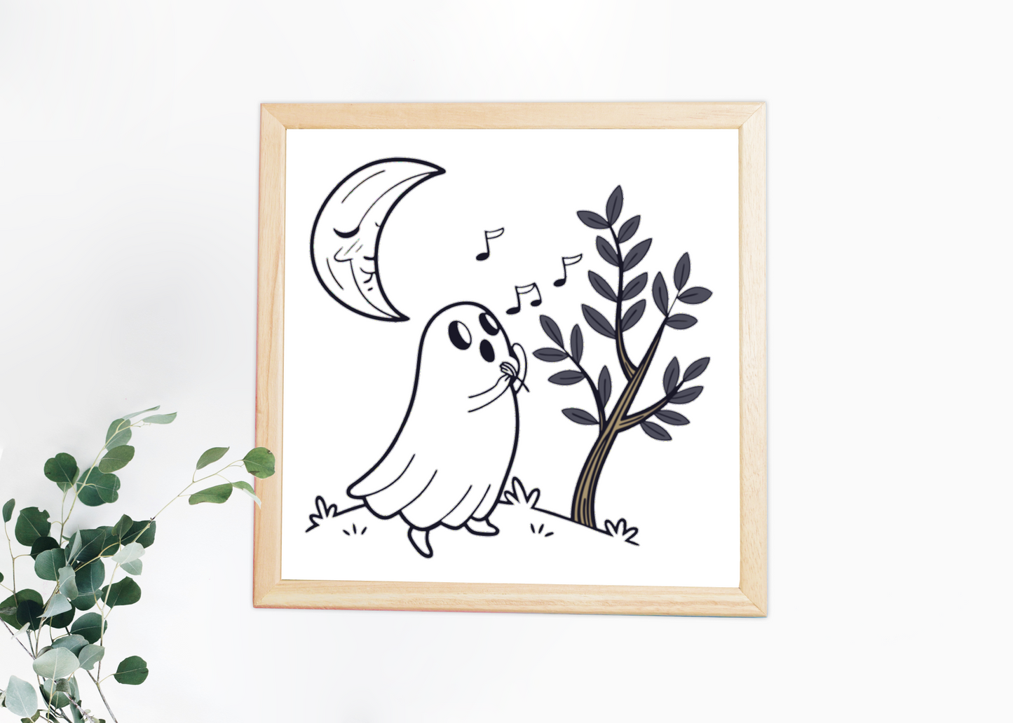 Plongez dans un monde surréaliste où un petit fantôme chante sous la clarté douce de la lune endormie. Idéal pour des projets créatifs, ce fichier numérique vectoriel vous transcendera dans des ambiances mystérieuses et poétiques. Utilisable pour la papeterie, les impressions DIY et les projets éducatifs, ce dessin captivant stimulera votre imagination.