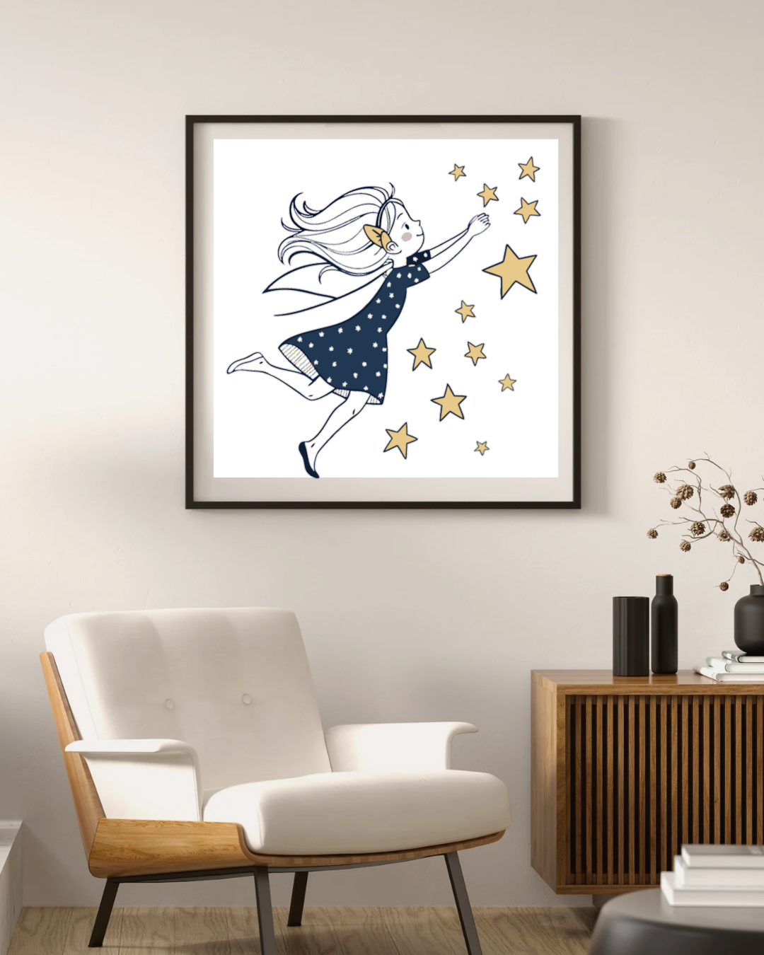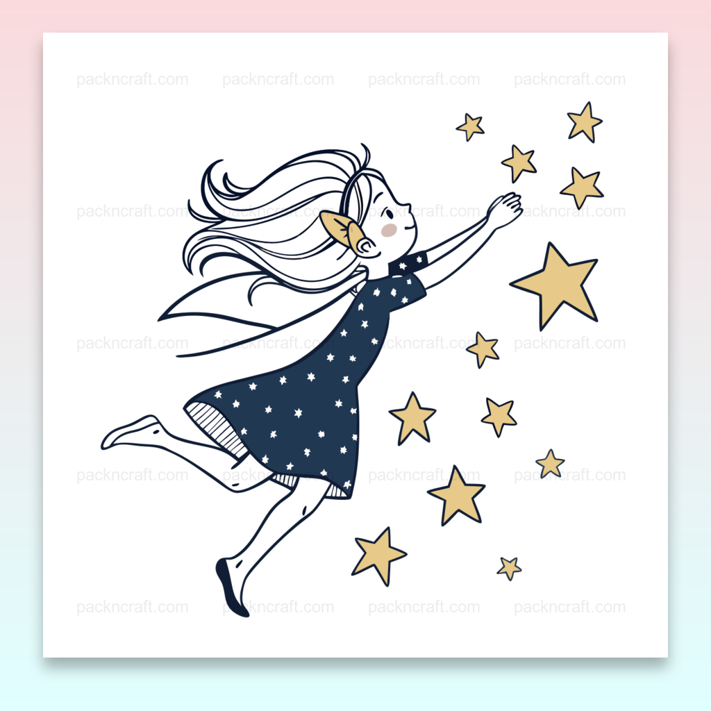 Fée rêveuse attrapant des étoiles | Style doux SVG | Conte féerique