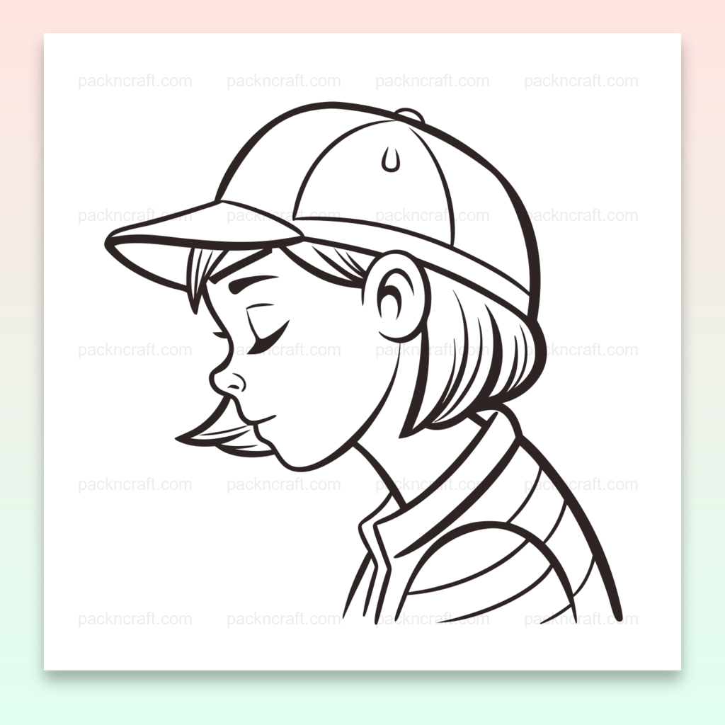 🌟 Découvrez cette illustration captivante d'une jeune fille en casquette, exprimant une sérénité et douceur qui apaiseront votre espace créatif !