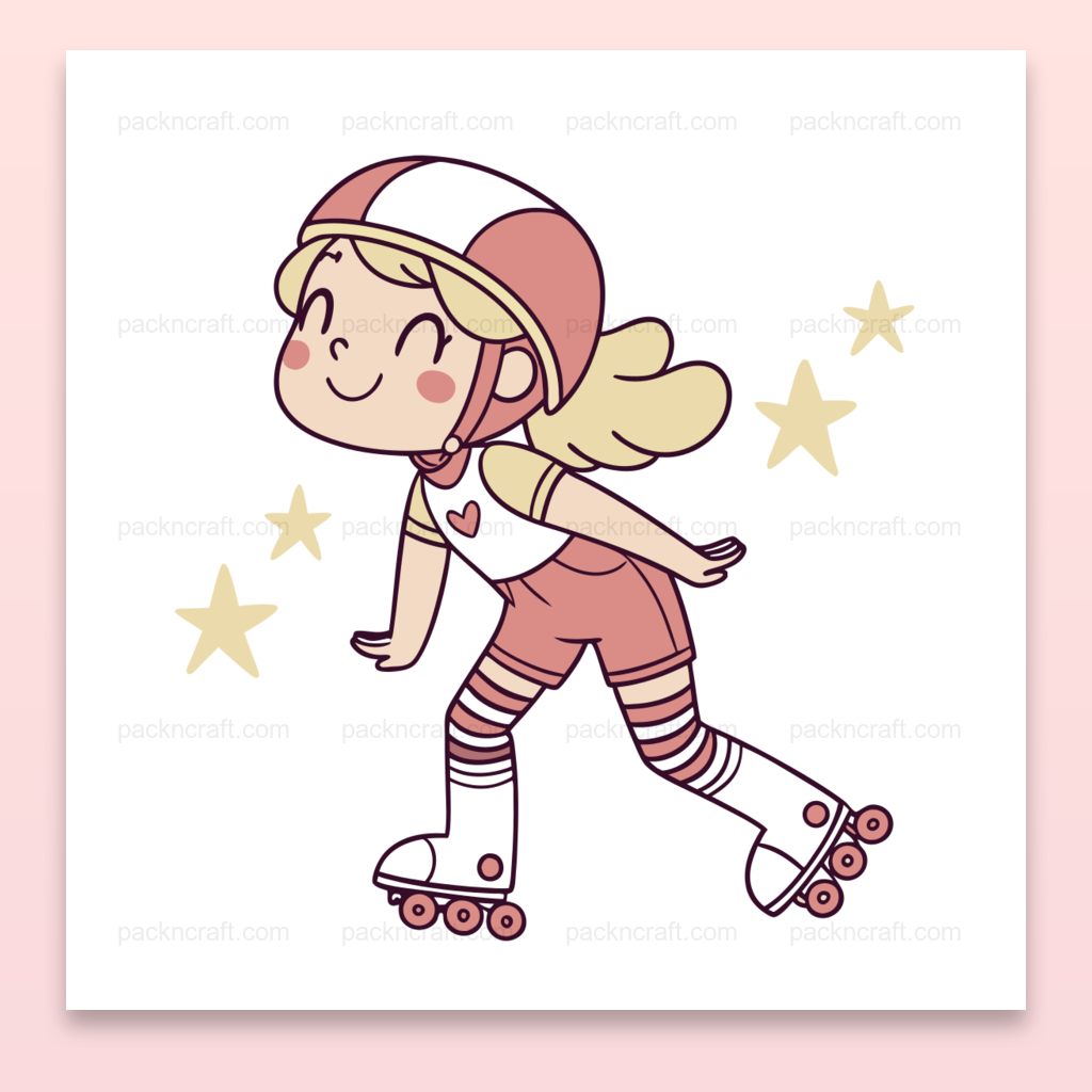 Cette belle illustration vectorielle représente une fillette heureuse en train de faire du roller. Elle est parfaite pour divers projets créatifs comme la décoration, les cartes, ou même des projets éducatifs. Avec son style minimaliste et ses couleurs douces, elle s'adapte à tous vos besoins esthétiques.