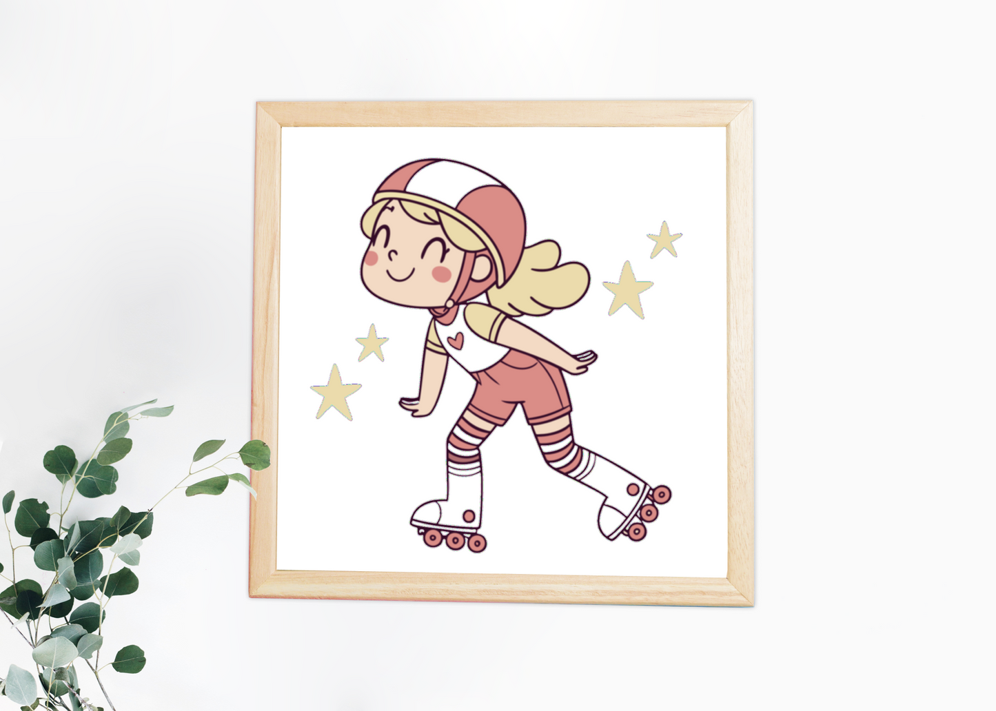 Fillette joyeuse en rollers | SVG Minimaliste | Été