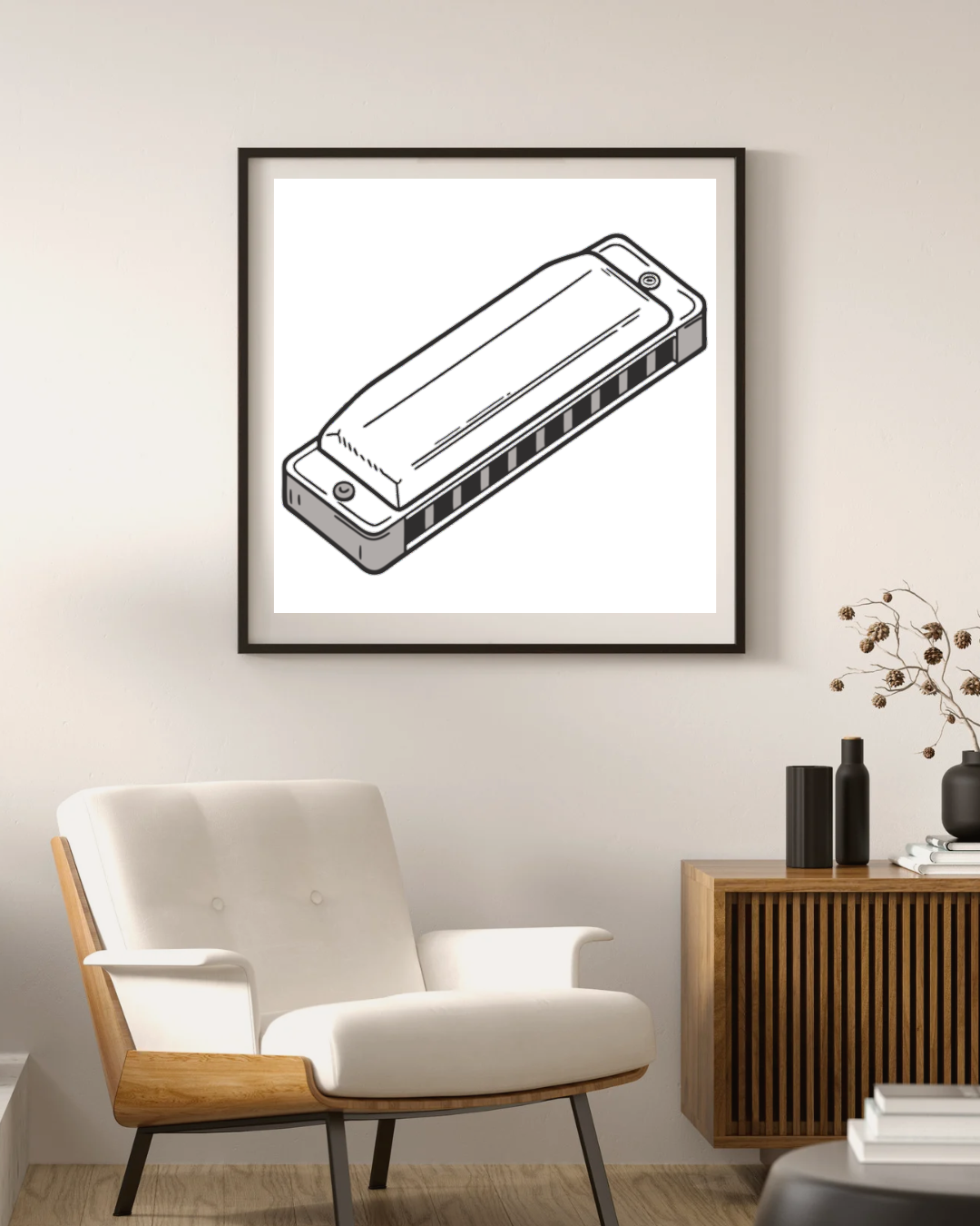 Laissez-vous séduire par ce visuel de qualité, représentant un harmonica avec une touche artistique. Que ce soit pour des projets éducatifs, des créations de papeterie ou des impressions DIY, ce fichier de qualité professionnelle est idéal pour ajouter une touche musicale à vos designs.
