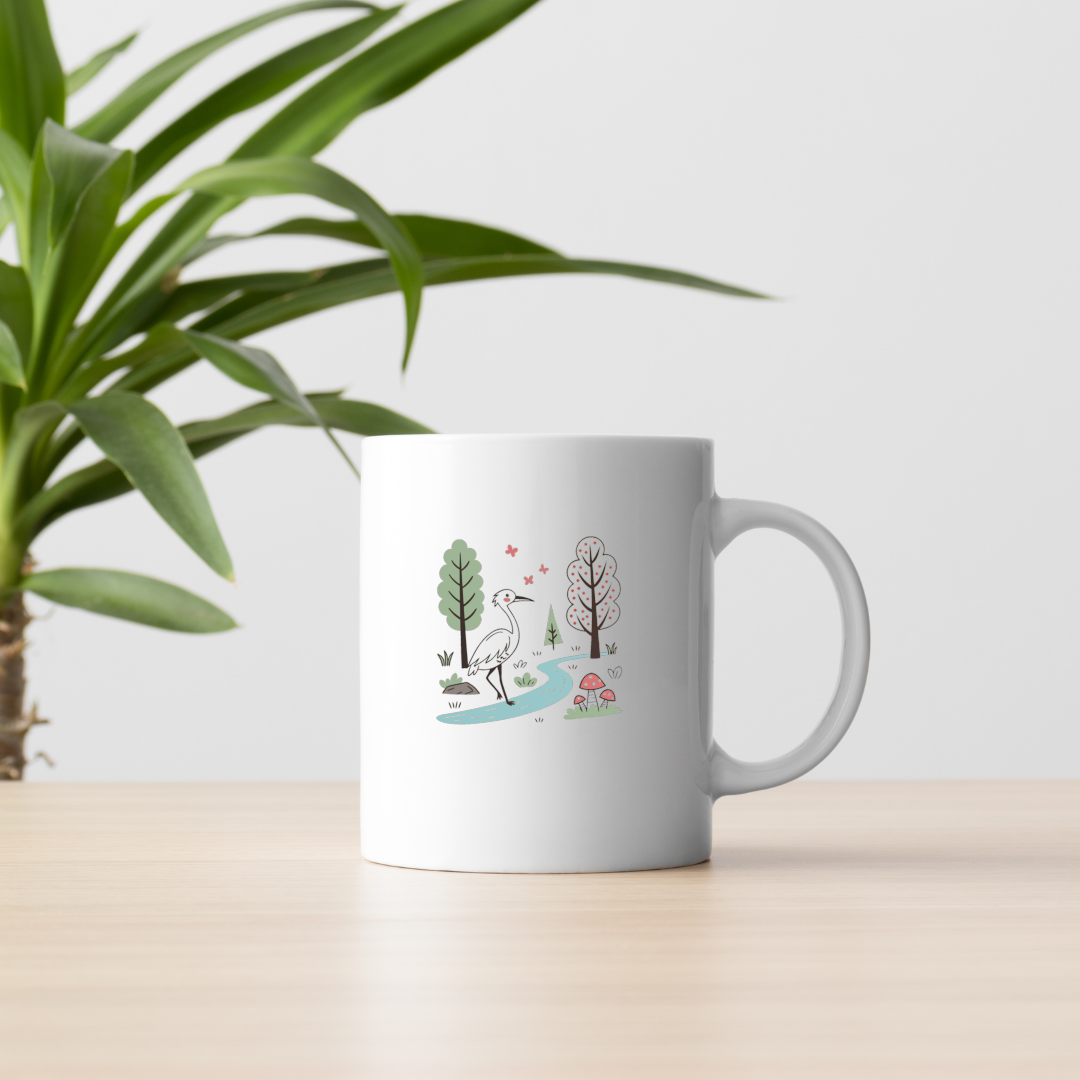 Héron au bord du ruisseau | SVG Illustratif | Nature paisible
