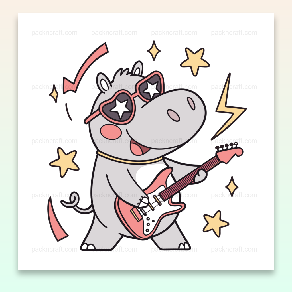 Ce fichier numérique offre une illustration unique d'un hippopotame jouant de la guitare comme une vraie rock star. Parfait pour ajouter une touche amusante et musicale à vos projets visuels, qu'il s'agisse de sticker, de papeterie ou de décorations d'événements.