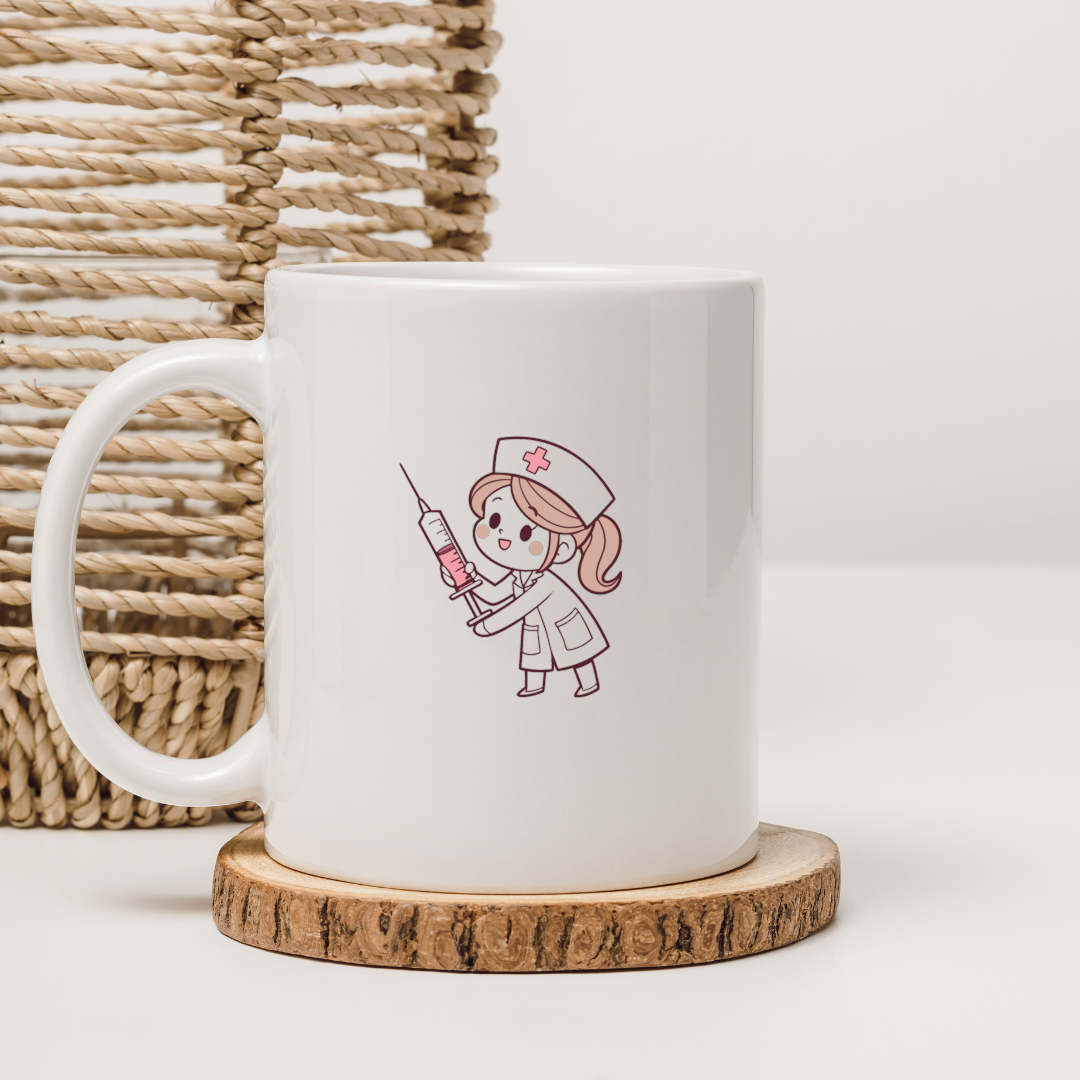 Infirmière joyeuse avec seringue | Style cartoon doux | Thème médical