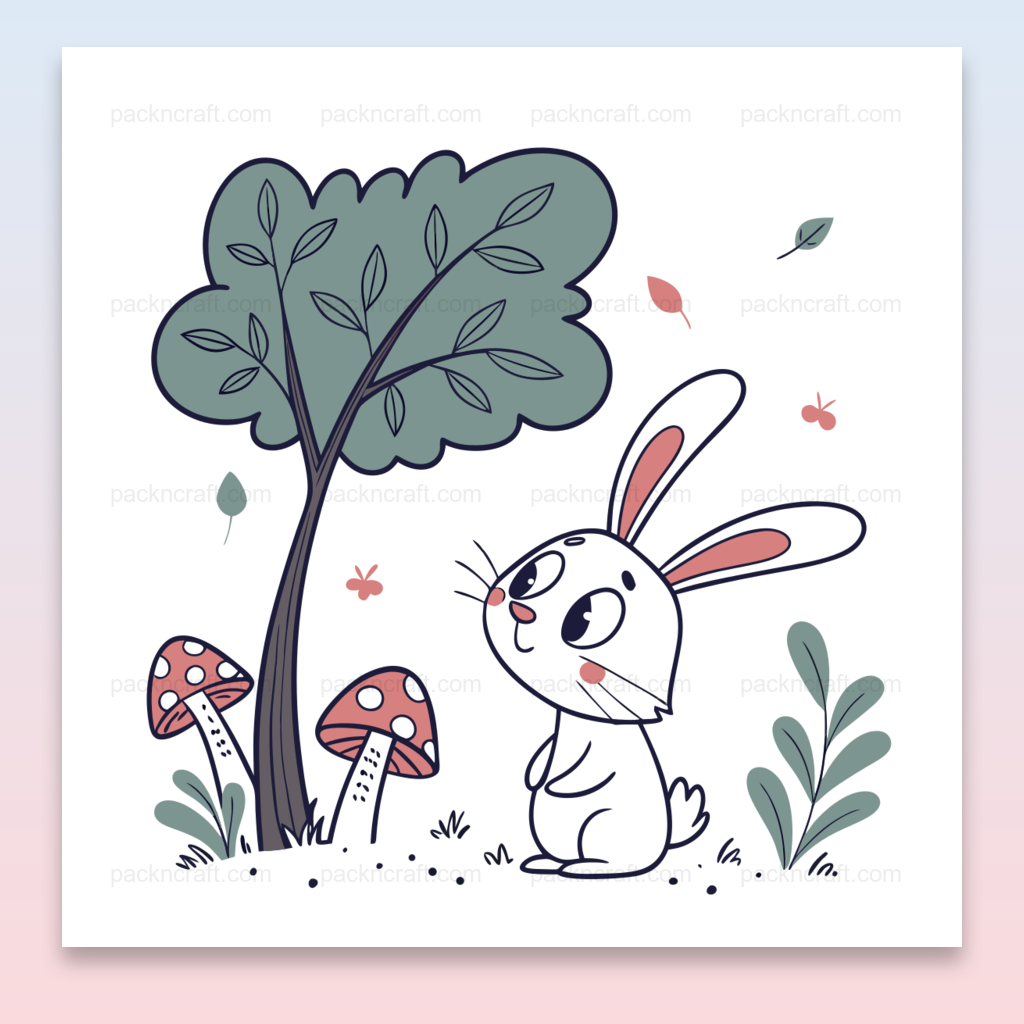 Lapin curieux sous un arbre | SVG Pastel | Ambiance forêt
