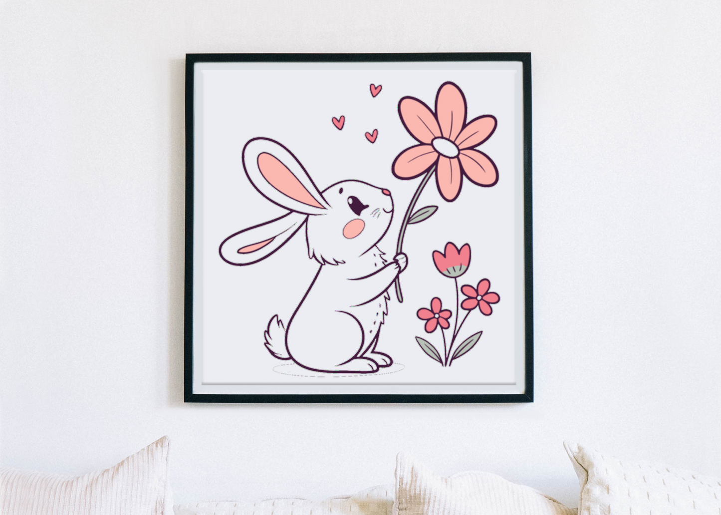 Lapin émerveillé tenant une fleur | SVG doux | Thème printemps