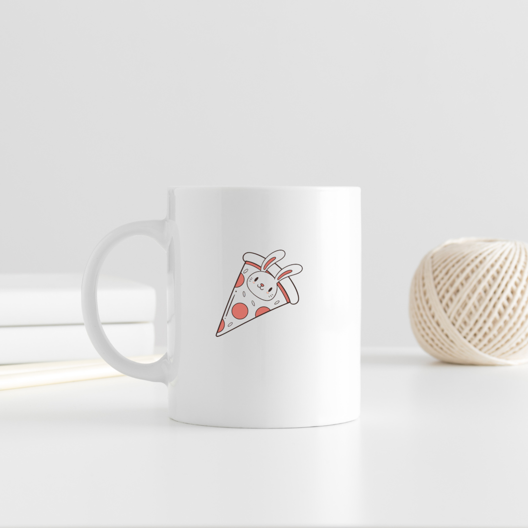 🍕 Découvrez l'illustration adorable d'un lapin joueur lové dans une tranche de pizza ! Parfait pour donner une touche de fun à vos projets créatifs.