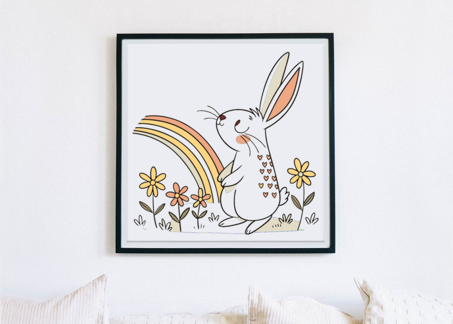 🌈 Apportez de la joie dans vos créations avec cet adorable lapin sous un arc-en-ciel floral !