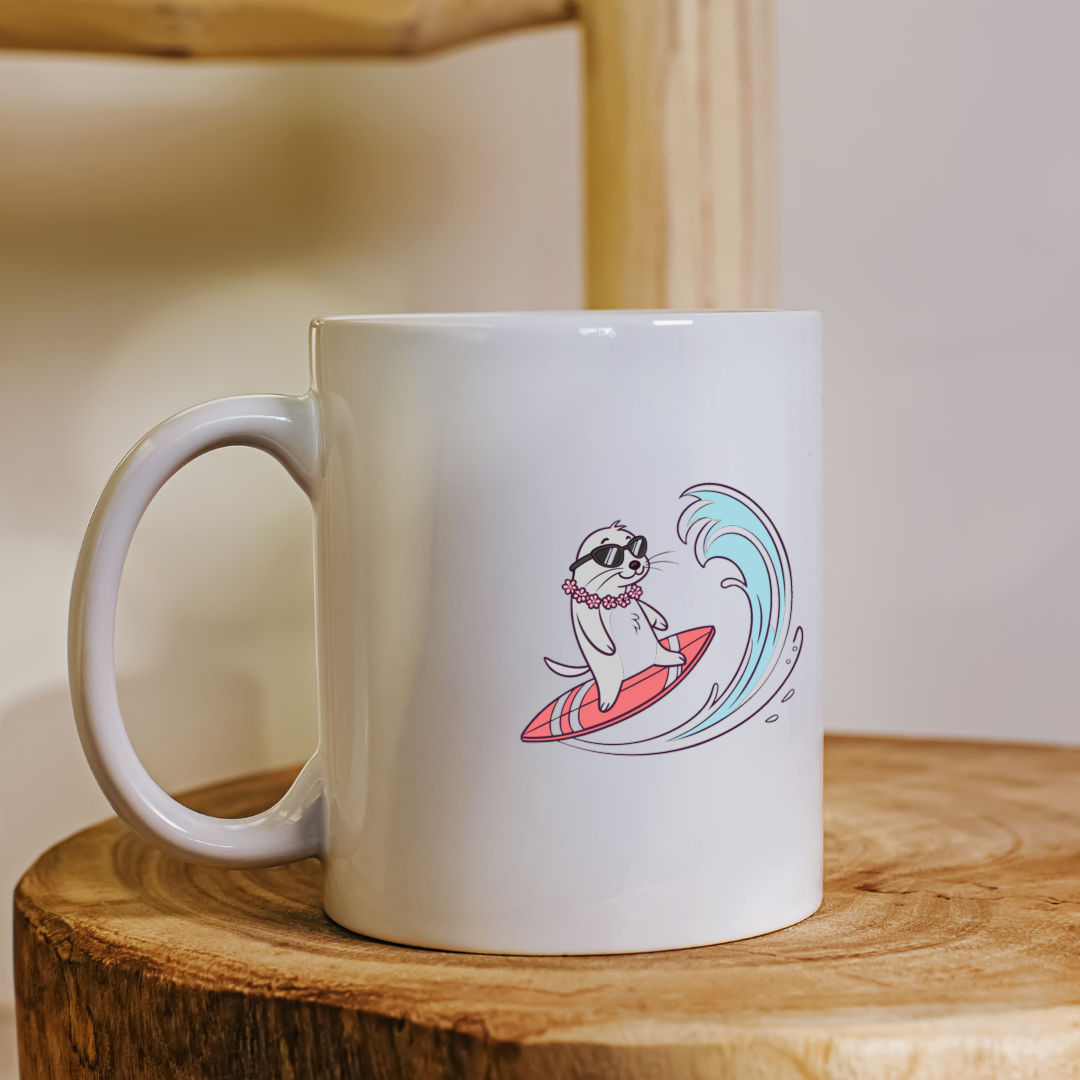 Créez une ambiance estivale avec cette illustration unique de loutre surfeuse ! 🌞