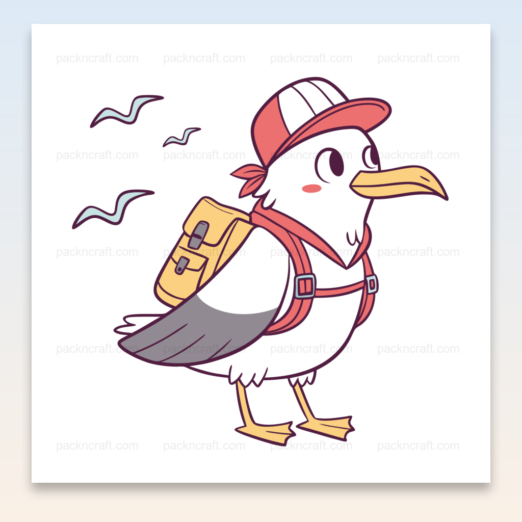 ✨ Apportez une touche d'aventure à vos projets avec notre illustration de mouette en voyage !