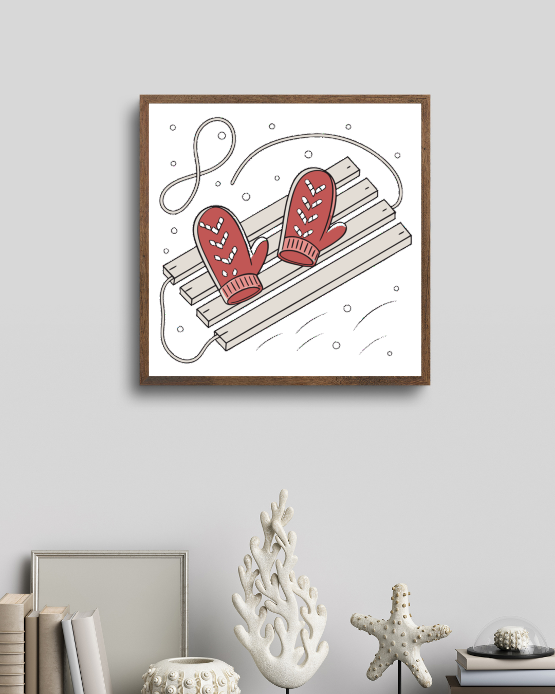 Moufles sur luge | SVG hivernal stylisé | Hiver magique