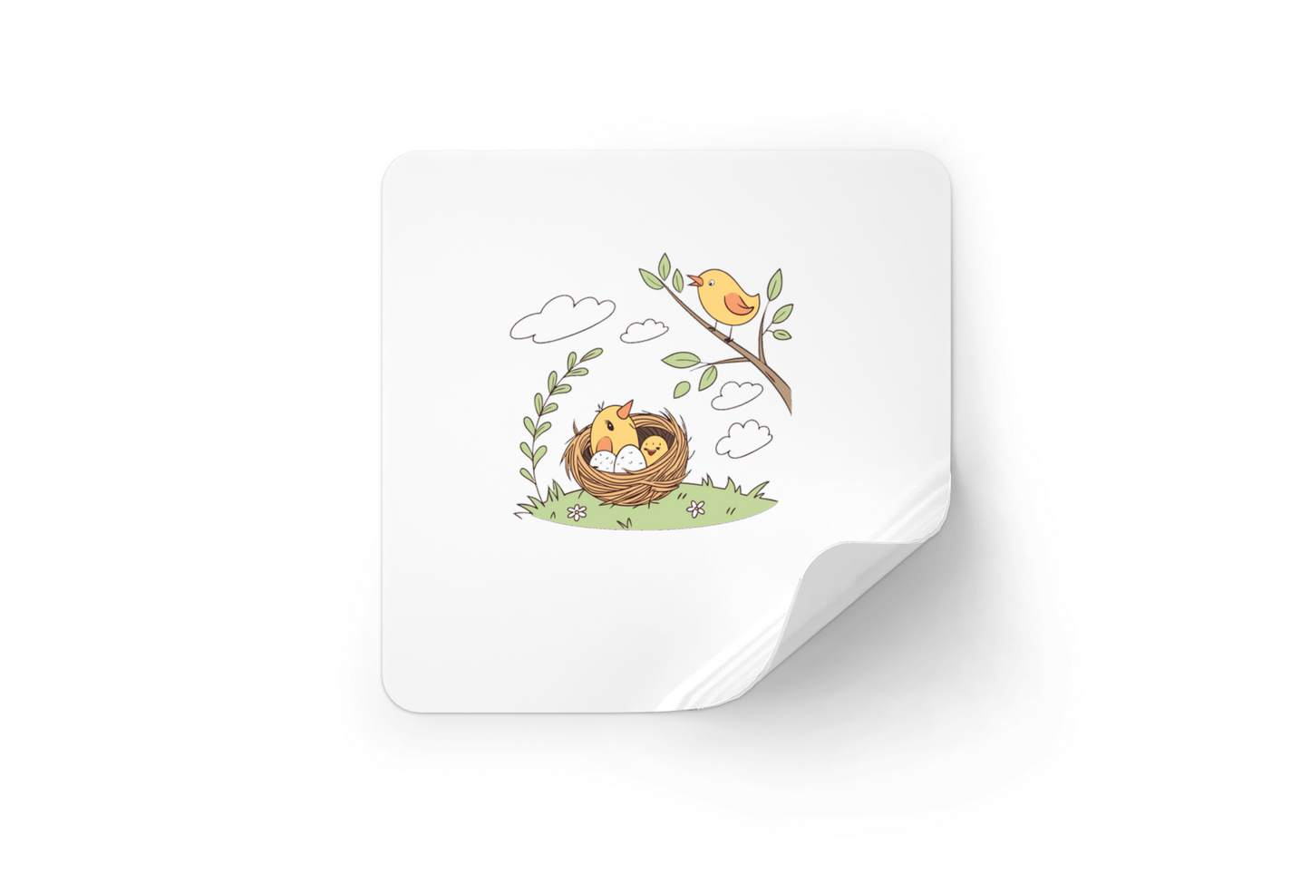 Cette œuvre captivante capture un moment printanier serein avec un oiseau chantant joyeusement sur une branche, surplombant un nid douillet. Parfaite pour des projets de stickers, papeterie ou impressions DIY, cette illustration vectorielle est un atout créatif polyvalent. Laissez-vous séduire par ces graphismes évocateurs qui ajoutent une touche naturelle et rafraîchissante à vos créations !