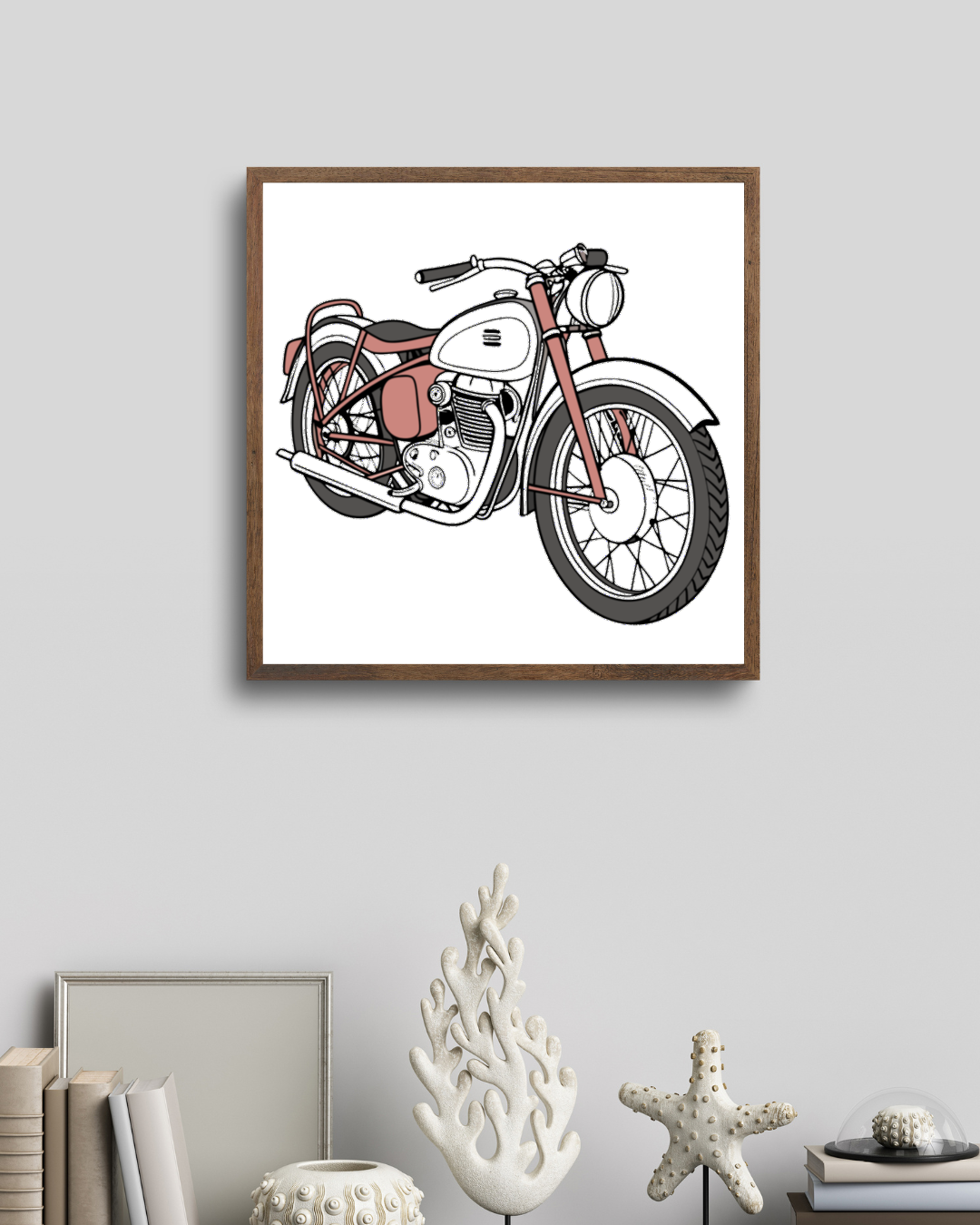 Plongez dans l'univers rétro avec ce visuel de moto classique des années 1950. Cette illustration numérique est idéale pour les amateurs de design vintage, offrant une touche d'authenticité à vos projets. Le fichier inclus un SVG vectoriel parfait pour des impressions de haute qualité, ainsi qu'un PNG haute définition (1024x1024 pixels), prêt à être utilisé dans des projets numériques ou imprimés.