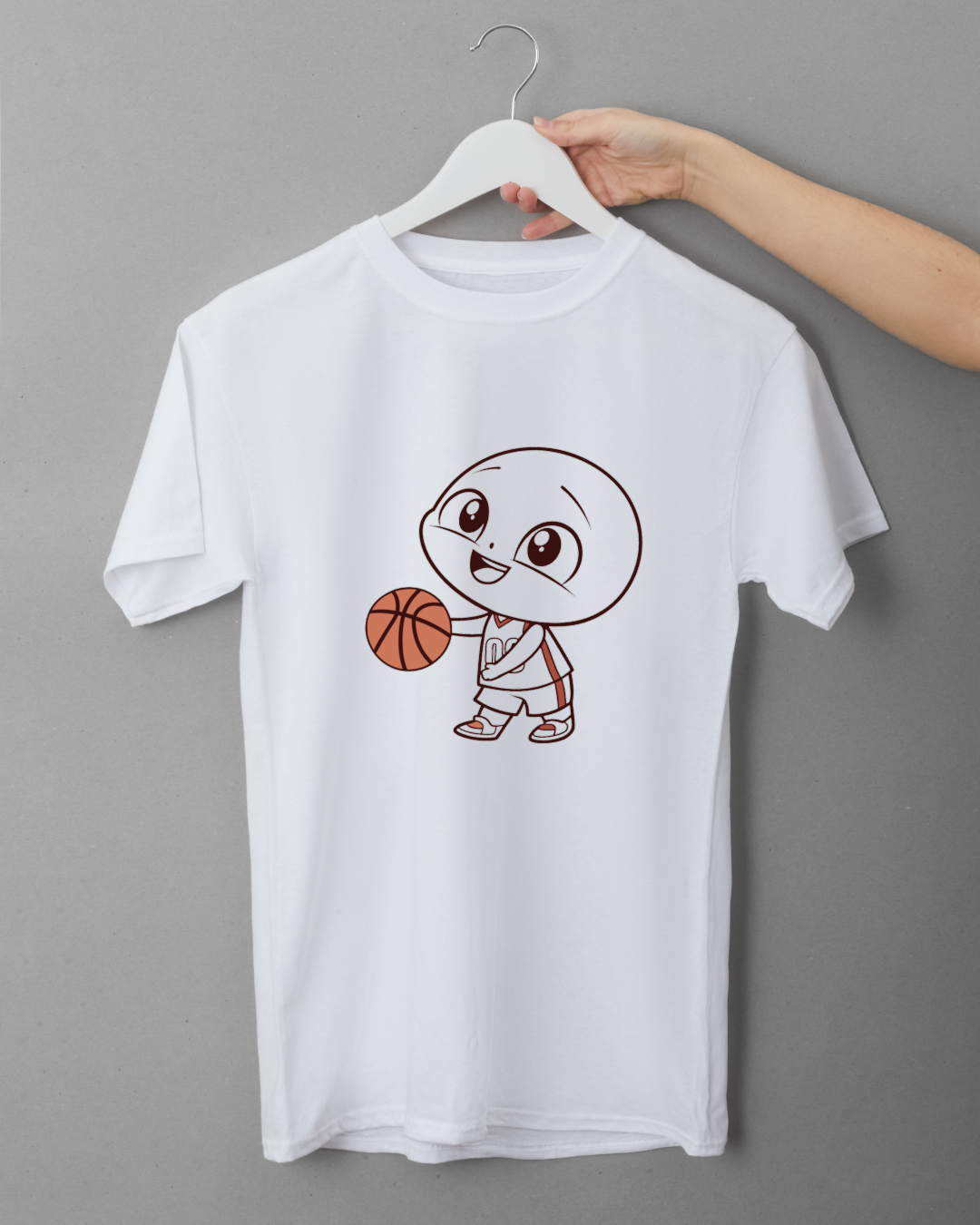 🌟 Découvrez notre illustration adorable d'un petit joueur de basket plein de joie, parfaite pour donner vie à vos projets créatifs !