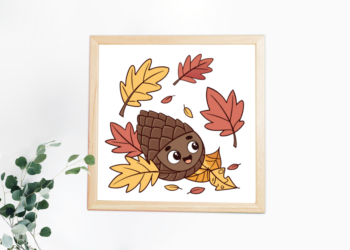 Découvrez une joyeuse pomme de pin animée par un souffle de vent automnal, entourée de feuilles colorées. Ce fichier numérique est idéal pour apporter une touche de magie saisonnière à vos projets. Parfait pour des stickers, papeteries, ou encore des impressions DIY, laissez libre cours à votre créativité avec ce design captivant.