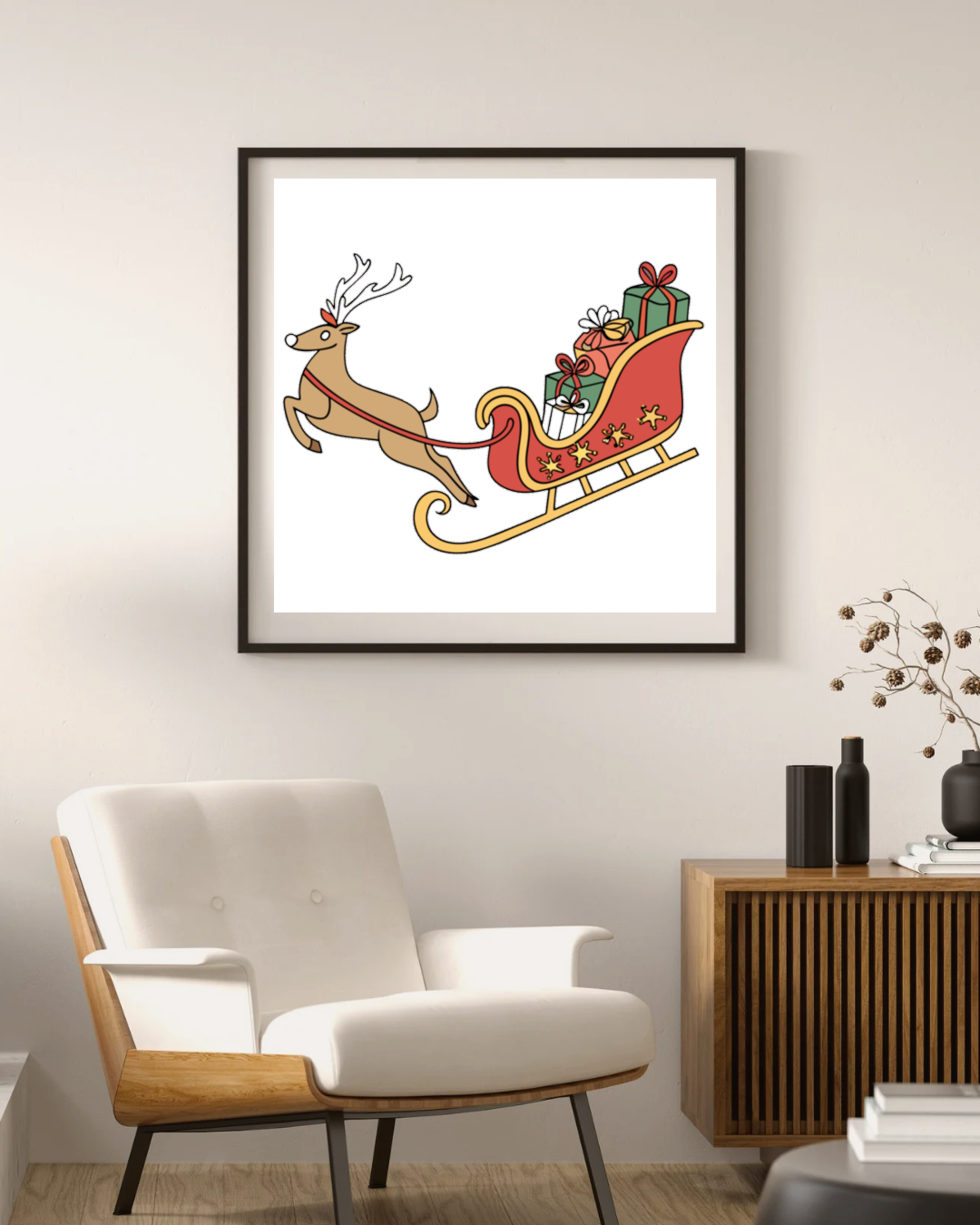 Renne joyeux avec traîneau | SVG festif | Noël magique