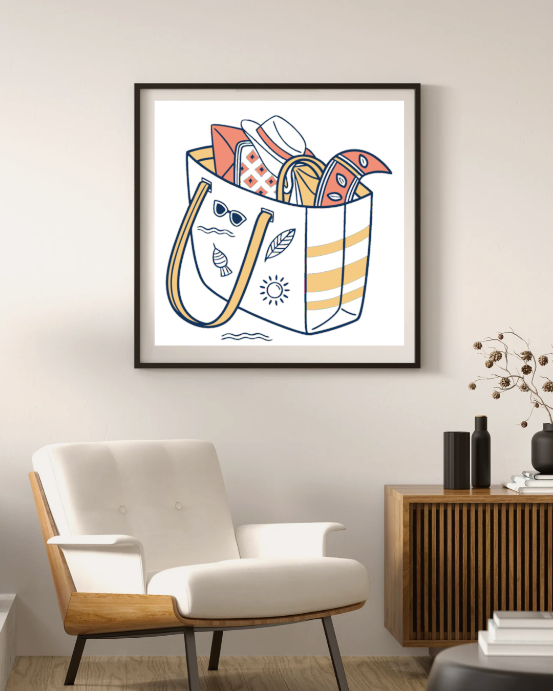 Découvrez l'élégance d'un design minimaliste capturant l'esprit des vacances. Ce fichier numérique, disponible immédiatement après achat, est idéal pour des projets de DIY, de papeterie ou de décoration. Apportez une touche de soleil à vos créations avec ce visuel unique représentant un sac de plage rempli d'accessoires estivaux.