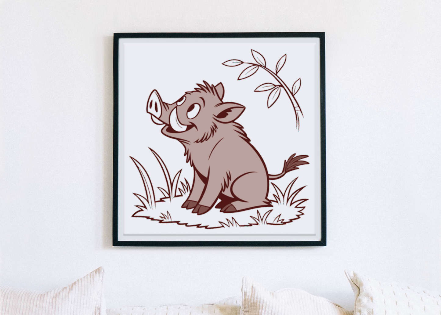 Sanglier joyeux dans les herbes | Style monochrome | Thème forêt