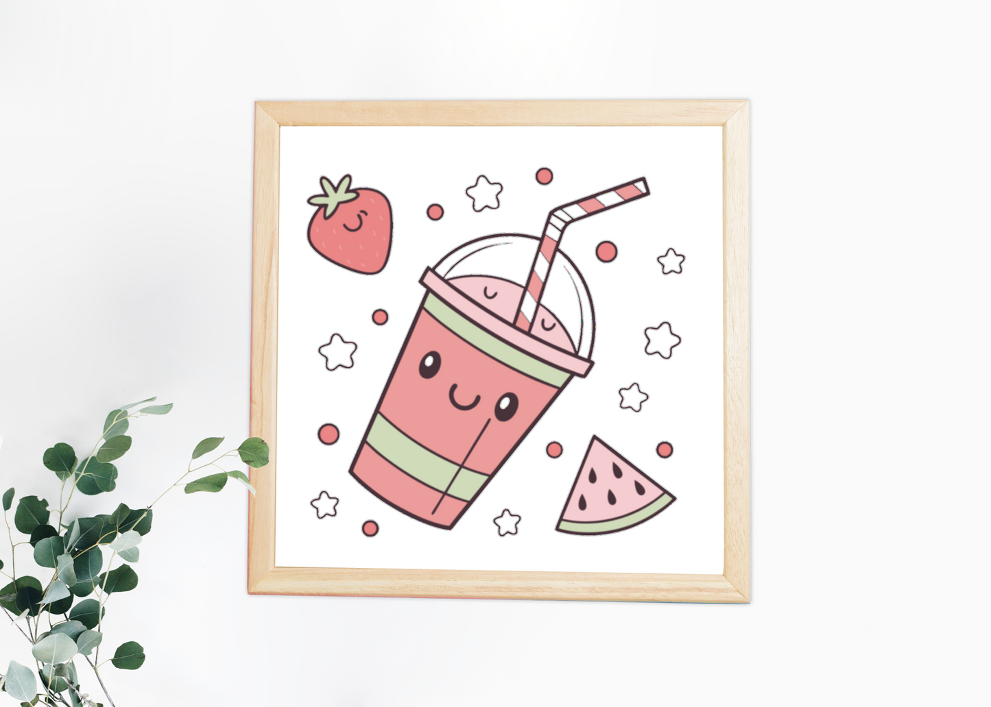 Immergez-vous dans un monde de douceur avec notre illustration de smoothie fraise en style kawaii ! 🌟