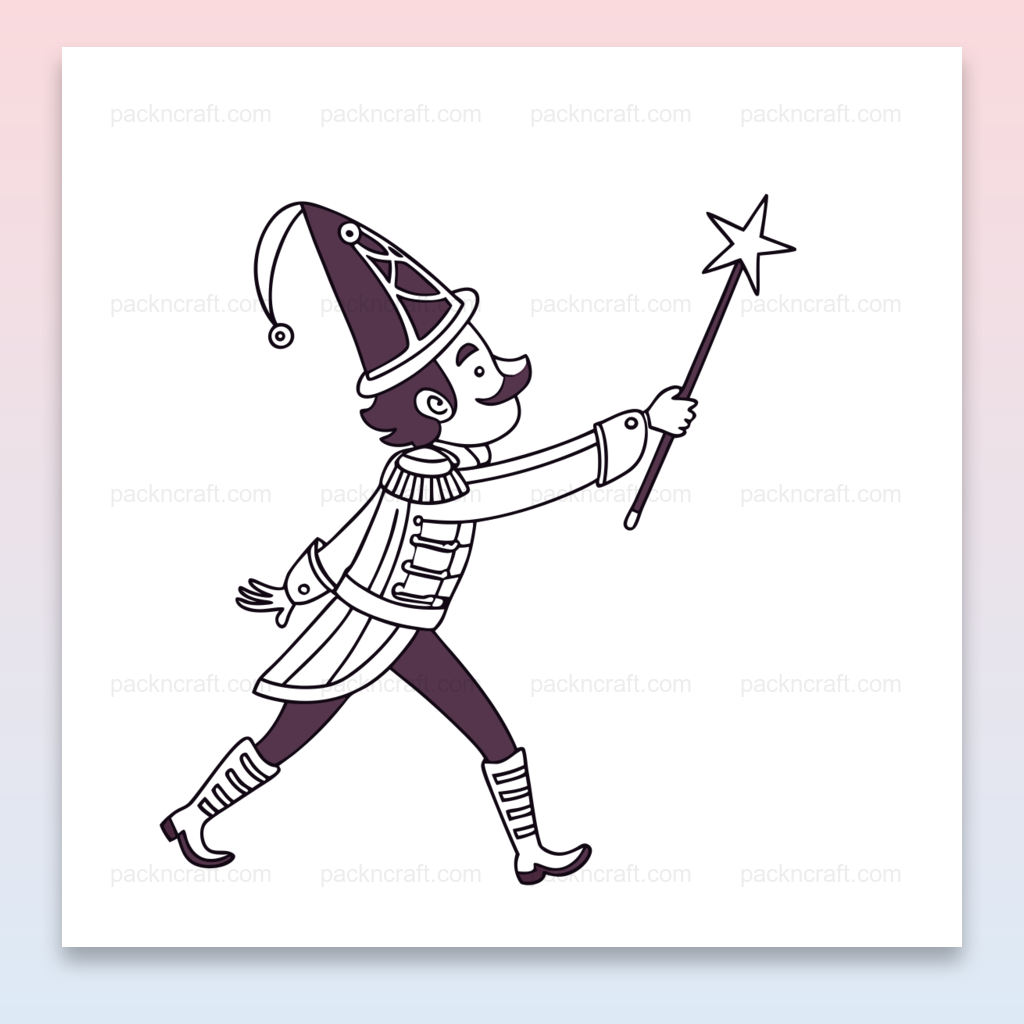 Sorcier joyeux avec baguette | Art SVG monochrome | Thème magique