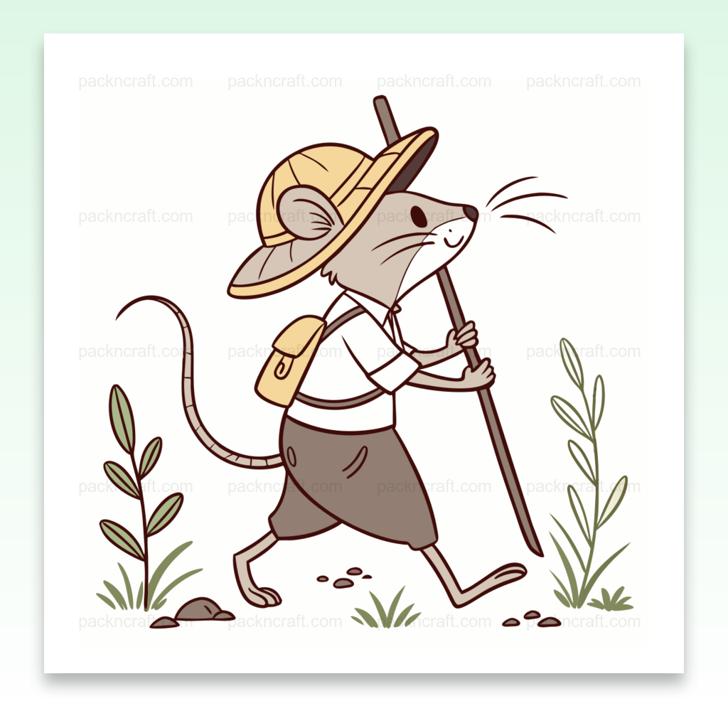 Découvrez la souris explorateur qui parcourt le monde avec son sac à dos et bâton de marche. Idéale pour ajouter une touche d'aventure à vos projets créatifs. Utilisez ce visuel pour réaliser des stickers, des affiches ou des cartes DIY. Parfait pour l'éducation, la papeterie ou simplement pour décorer vos espaces préférés.
