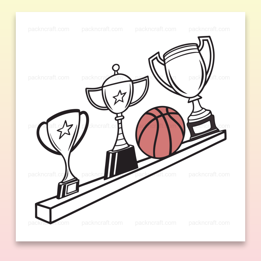 Immergez-vous dans le monde du sport et de la victoire avec notre illustration numérique unique représentant des trophées élégants et un ballon de basket stylisé. Parfait pour les passionnés de sport, cet élément graphique peut être utilisé pour des créations variées telles que des stickers, des affiches, de la papeterie ou des projets éducatifs. 🌟