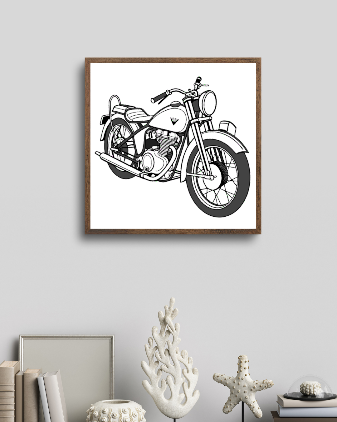 Utilisez cette illustration pour vos projets DIY, éducatifs ou de décoration. Son style est un hommage intemporel aux motos classiques, capturant l'allure et l'élégance des années passées.